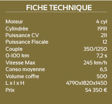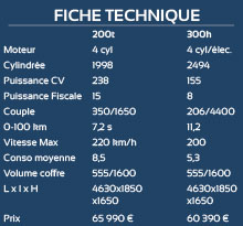 Les versions « Premium » et « Sport » sont équipées dun moteur essence 4 cylindres de 2,0 litres dune puissance de 211 ch. Les boîtes de vitesse automatiques assurent un changement de rapport souple et sans heurts grâce à un double embrayage à sept rapports.