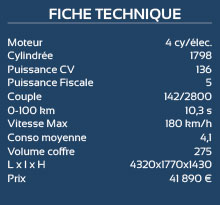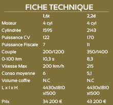 Une gamme variée de motorisations est proposée, chacune delles efficiente. Ainsi, le modèle de base est équipé au choix dun moteur essence de 1,6 litre développant 122 ch ainsi quun 1.6 litre de 156 ch, ou bien dun moteur diesel 4 cylindres de 1,5 litre et 109 ch ou de 2,2 litres, délivrant une puissance de 170 ch.