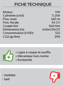 La structure mêle aluminium et fibre de carbone, la Huracan offre une ligne d'avion furtive, inspirée de sa grande sur Aventador LP 700-4. Affichant 1 422 kg sur la balance, le coupé reprend le moteur 5,2 litres V10 de sa devancière. Elle passe aussi de 560 à 610 ch lui permettant des performances de tout premier plan, 0-100 km/h en 3,2 secondes et une vitesse de pointe, sur circuit, de 325 km/h ! Côté tarif, un détail, se situe à 211 400 !