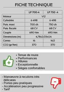 Pour réaliser de telles performances, lAventador à perdu au passage 50 kg (Superveloce) en utilisant le carbone, au niveau des panneaux de portes, les ailes, les prises dair et laileron (désormais fixe).