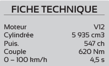 La V12 Vantage S est la concrétisation d’un rêve ambitieux et un peu fou, d’associer la légendaire puissance du moteur V12 au châssis le plus compact et le plus agile de la série Vantage. La dernière évolution du moteur V12 associé à la transmission Sportshift III à sept rapports permettent de faire fusionner ses performances explosives avec un contrôle total et une vitesse maximale de 328 km/h, faisant d’elle la plus rapide de l’histoire de la marque. Sur la piste, vous pourrez exploiter pleinement les 573 ch et les 620 Nm de couple et profiter de cette poussée d’adrénaline intense et non censurée faisant de la V12 Vantage S une des voitures la plus remarquables de nos 100 ans d’histoire. La V12 Vantage S parcours le 0 à 100 km/h en seulement 3,7 secondes.