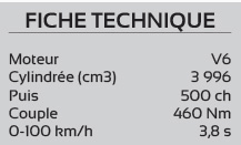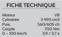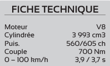 Particulièrement sportif, le Pack Compétition optionnel impressionne par son look course et accroît encore les performances. Les chiffres sont éloquents : 680 Nm, 560 ch (412 kW), 0 à 100 km/h en 4,3 secondes (avec le Pack Compétition : 575 ch (423 kW), 0 à 100 km/h en 4,2 s.).