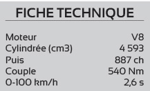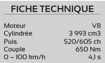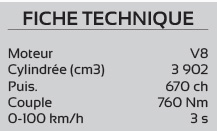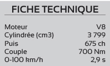 Côté performances, le V8 3,8 litres turbo, fort de ses 675 chevaux s’offre un 0 à 100 km/h en 2,9 secondes seulement et un 200 km/h départ arrêté en 7,9 secondes ! La vitesse de pointe se situe à 340 km/h, des performances hors normes, cela va de soi !