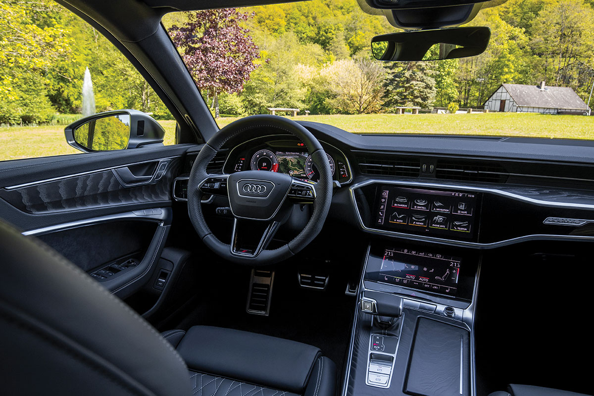 Dans l’habitacle, le luxe de la berline est omniprésent tandis que l’espace à bord y est très bon : assise sécurisée, espace généreux au niveau des jambes et de la tête. La sportivité aussi, avec des sièges sport de série (laissons tout de même le pinacle à la RS6). La modernité fait partie des passagers à bord, avec une instrumentation entièrement numérique et l’intégration de l’Audi Virtual Cockpit commandé à partir du volant multifonction. Le plaisir de conduite est quant à lui renforcé par les nombreuses aides à la conduite, rendant l’expérience plus rassurante.