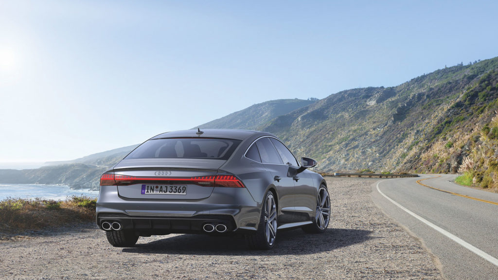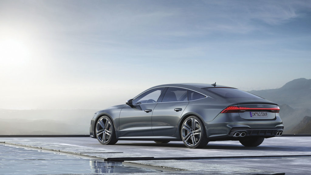 Audi vient de dévoiler trois modèles en même temps, si proches qu’il en devient presque compliqué de faire un choix. Voyons voir la nouvelle S7 Sportback (dérivée de l’Audi A7 de seconde génération de 2018). Les modifications esthétiques sont vraiment très légères. Seules quelques légères modifications au niveau de l’habillage des rétroviseurs font partie des légers détails qui la différencient de la précédente. Kit carrosserie spécifique qui comprend des boucliers et ailes élargies, ainsi que le fameux quadruple pot d’échappement.