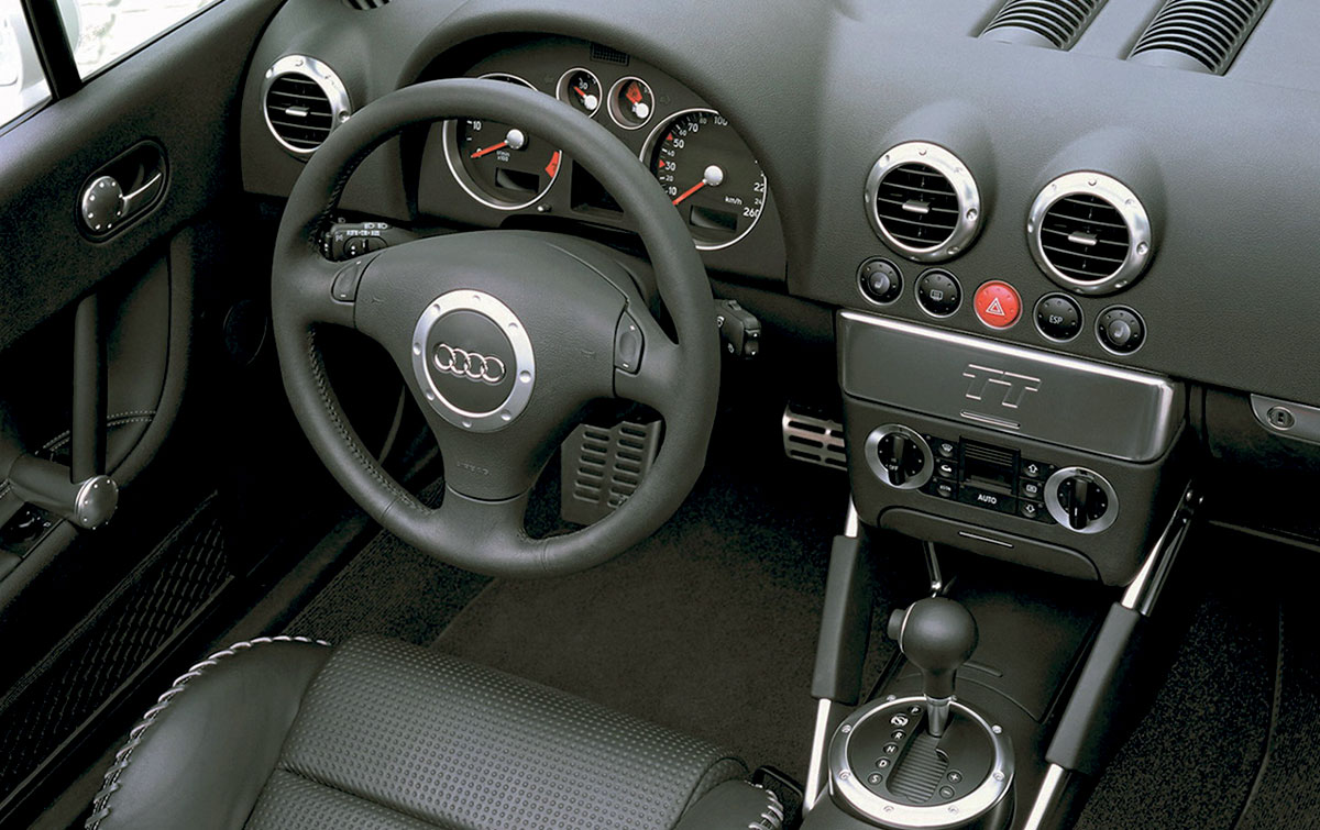 Ce roadster n’est proposé à ses débuts qu’avec un seul niveau de finition. Il n’en reste pas moins que la finition est à la hauteur de la marque aux anneaux, avec plusieurs rangements ici et là et une position de conduite intéressante. L’habitacle marque une rupture avec le design de la marque aux anneaux à l’époque : minimaliste et épuré, il ferait presque austère dans la sportivité. Pourtant, le TT se veut accueillant puisque cette 2+2 permet à 2 adultes de prendre place derrière les sièges, quand bien même de façon peu confortable. L’ESP est proposé de série, tout comme l’ABS ou encore l’air conditionné. En revanche, la capote est manuelle et pas forcément aisée à manipuler. En revanche, l’insonorisation est particulièrement réussie, même à vive allure.