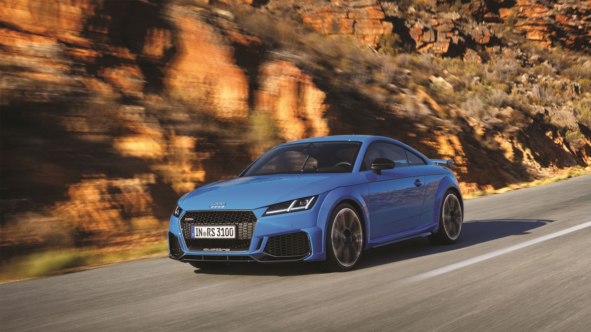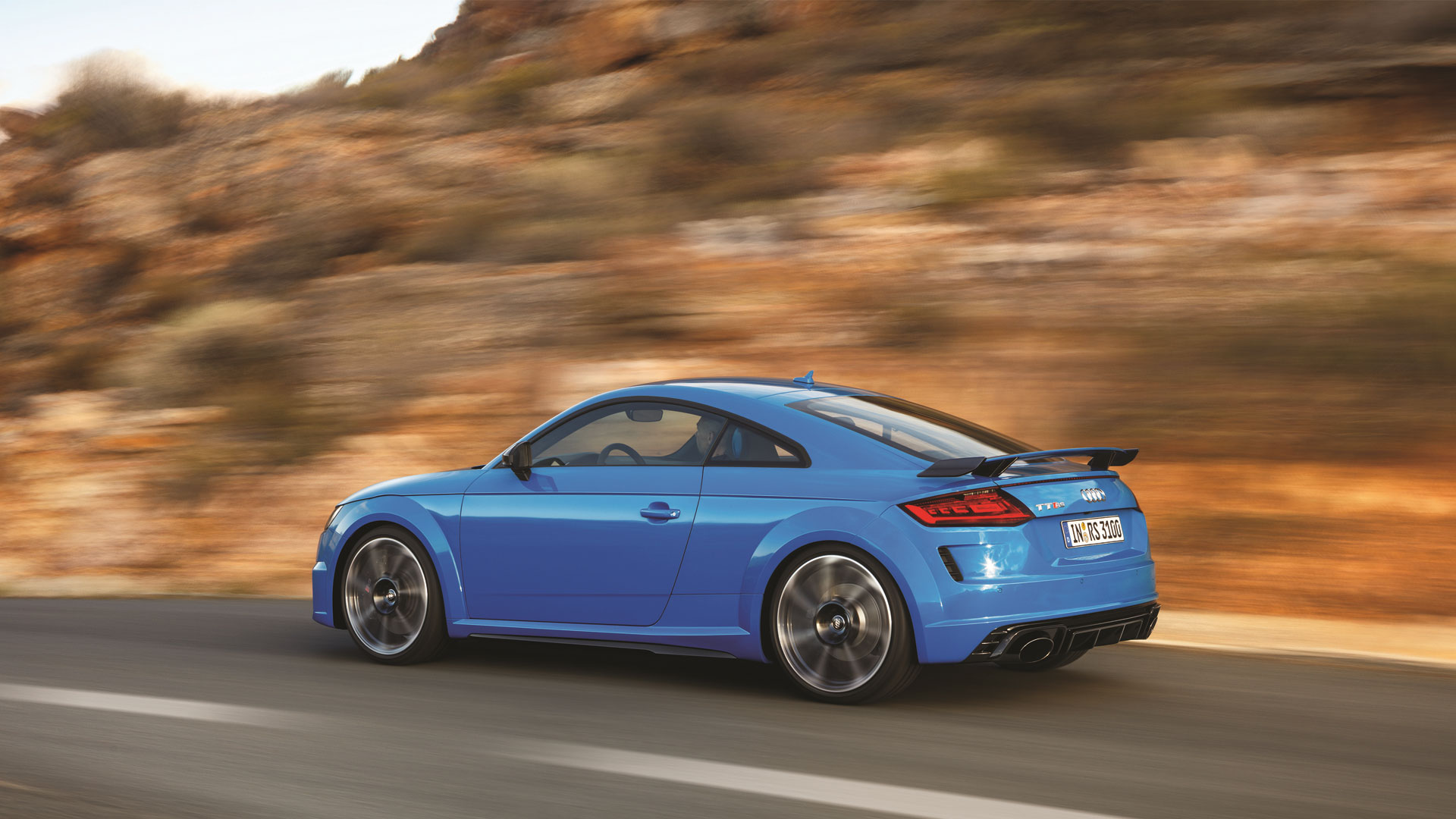 La marque d’Ingolstadt vient de terminer le renouvellement de la gamme de son modèle TT en présentant le restylage de la TT RS, la version la plus puissante. Pourtant, le restylage est vraiment léger vu qu’il s’agit pour l’essentiel d’évolutions esthétiques légères, et que le moteur, le nerf de la guerre, reste inchangé. Dire qu’Audi propose une nouvelle couleur au catalogue (vert Kyalami) et un large choix de modifications pour personnaliser le look extérieur de l’auto (lame avant, rétros), est-ce que ce sera suffisant pour prendre la lumière lors de sa présentation officielle, au salon de Genève ? Le look de cette nouvelle Audi TT RS est plus viril, en accord avec le langage esthétique Audi (que l’on peut retrouver sur le restant de la gamme TT, par exemple). Sur la face avant, les prises d’air latérales ont été agrandies. La calandre ne change pas, elle conserve le logo Quattro mais est désormais entourée de fentes ici et là pour optimiser les flux d’air. En revanche, l’arrière est plus explicite, avec des ouïes verticales sous les feux. Par ailleurs, l’auto bénéficie d’un nouvel aileron.