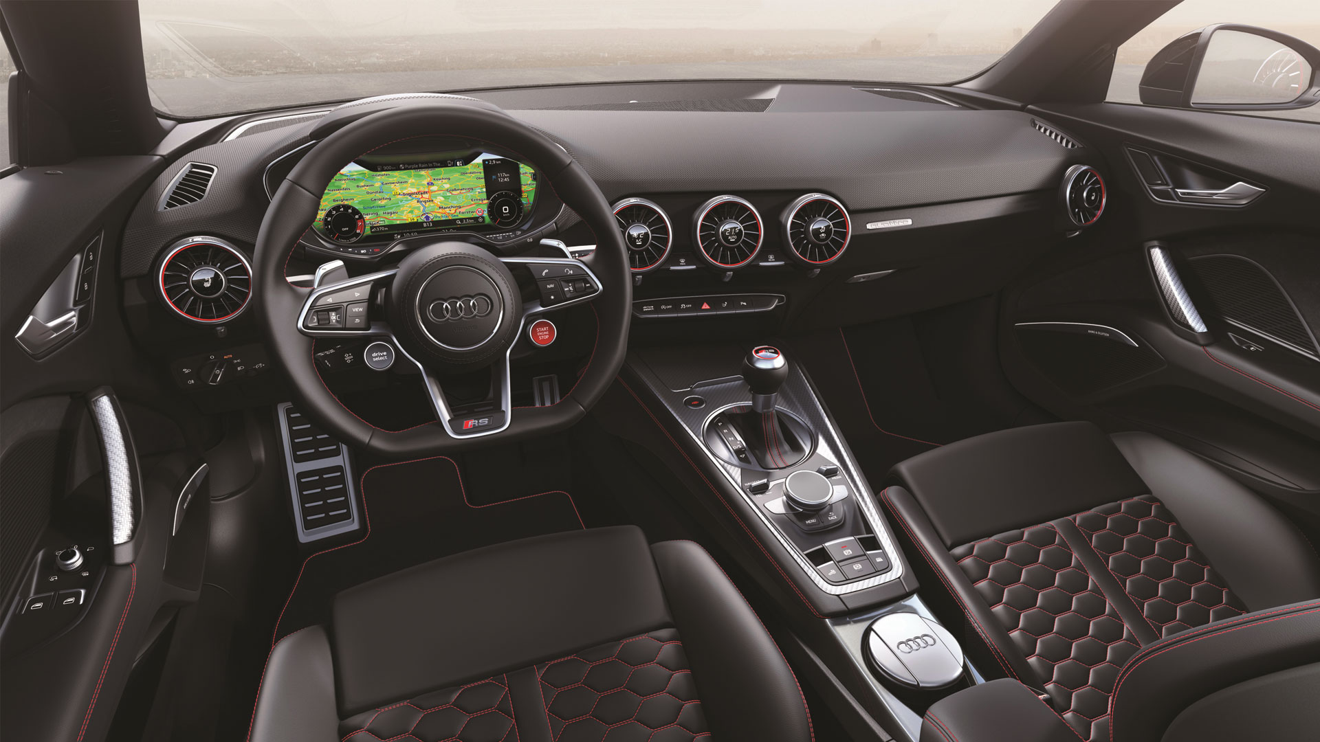 Dans l’habitacle, là aussi il n’y a aucune révolution majeure. Audi s’est simplement contenté de proposer de nouveaux pack colorés pour pousser à la personnalisation. L’intérieur reste typé sportivité Après tout, difficile de modifier de fond en comble une recette qui gagne pour un restylage. Sous le capot, on n’a pas spécialement cherché à faire dans la surenchère. Le cinq cylindres TFSI de 2,5 L développe 400 chevaux pour 480 NM de couple, comme auparavant. Une boîte automatique S-Tronic à 7 rapports donne de la puissance aux roues. Somme toute, ce restylage de la TT RS n’a pas de grosses ambitions si ce n’est d’unifier la gamme Audi TT et de la rendre cohérente dans son ensemble. Les premiers exemplaires devraient arriver en concessions vers avril / mai 2019.