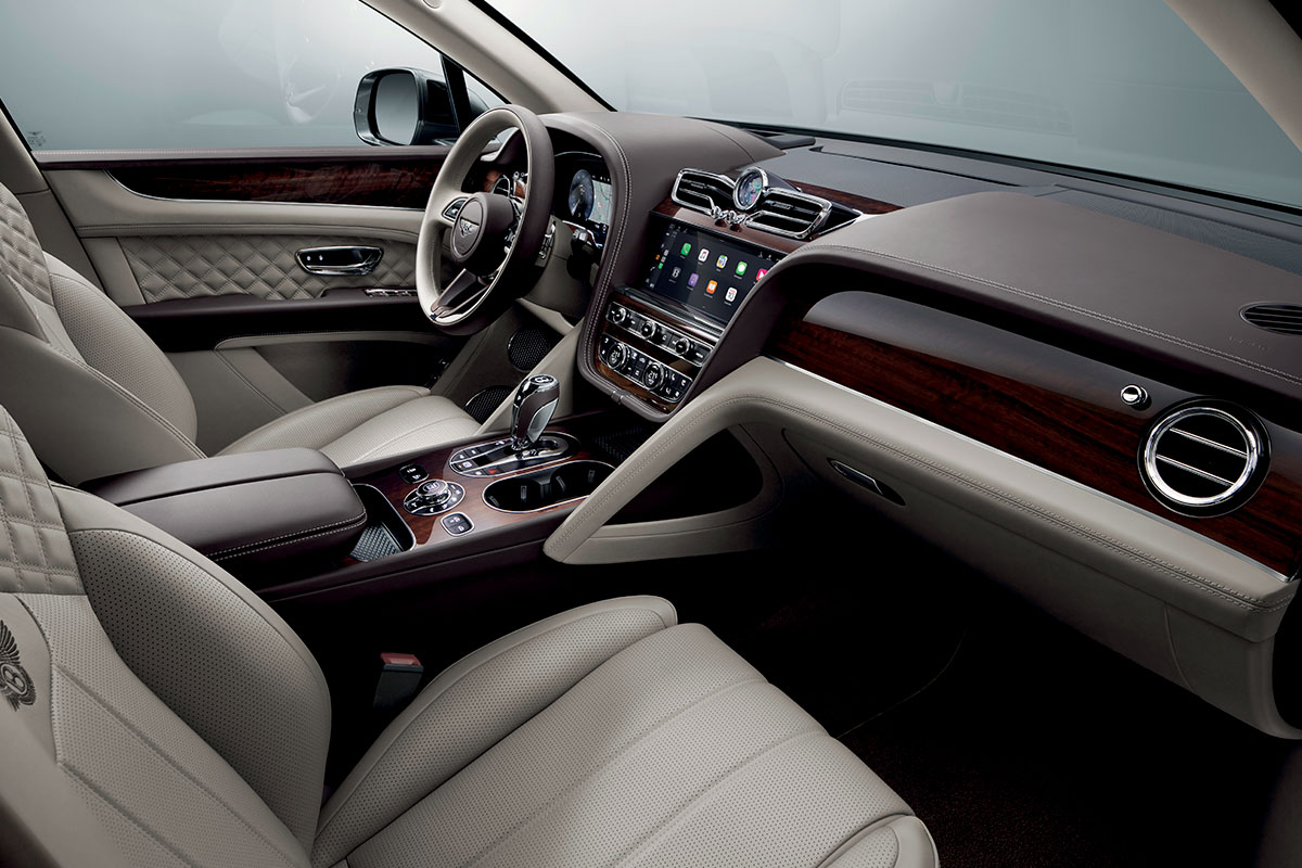 Une fois à bord, le Bentayga reste fidèle à son ADN de luxe tout en faisant peau neuve. La console centrale est remaniée avec un nouvel écran de 10,9 pouces, tandis que le système multimédia évolue (avec l’apparition de l’Apple CarPlay). Les sièges sont nouveaux, le volant a été revu, les aérateurs repensés. Cette nouvelle Bentayga est également plus spacieuse. L’auto est disponible de série en 5 places, mais peut-être configurée en 4 ou encore 7 places. Quoiqu’il en soit, les passagers arrière auront des tablettes tactiles encore plus grandes qu’avant le restylage.
