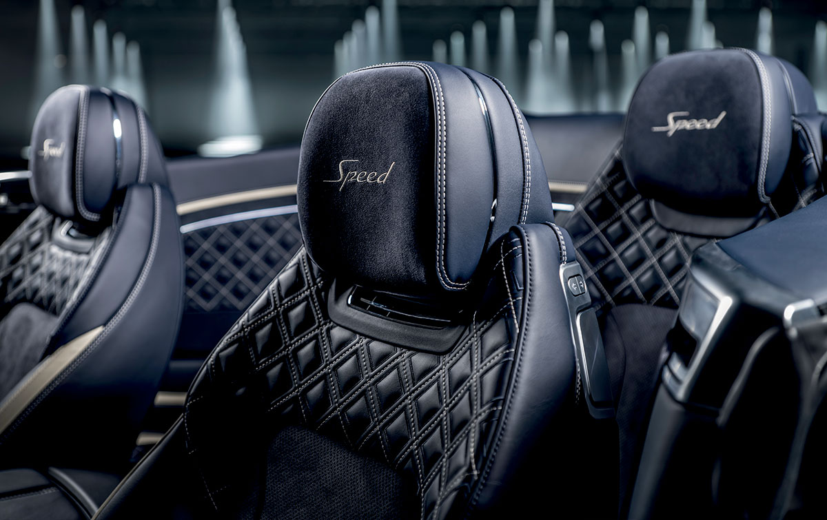 La ligne évolue très peu, mais de nombreux éléments esthétiques viennent parfaire ce cabriolet. Nous pouvons notamment admirer les badges Speed sur les ailes avant, mais également la finition sombre de ses prises d’air frontales. Le client possède le choix d’opter pour des freins carbone-céramique, accompagnant de nouvelles jantes 22 pouces.