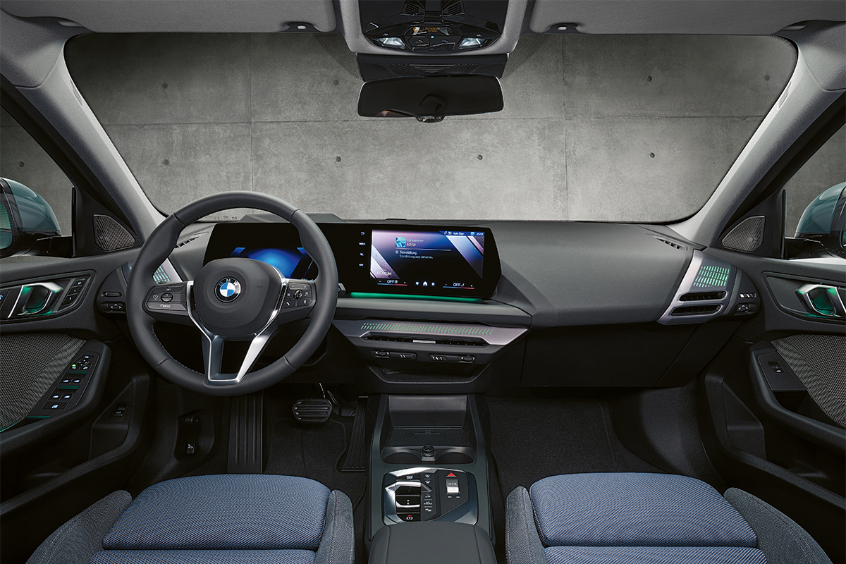 Dans l’habitacle, nous retrouvons la planche de bord de la nouvelle Série 5, avec le fameux Curved Display de BMW et une réduction des boutons physiques. La nouvelle Série 1 intègre la dernière version iDrive (tournant sous le BMW Operating System 9, développé avec Android), avec touches multifonctions au volant. Aussi, nous notons peu de changement en matière d’habitabilité et d’espace (le volume de chargement de 380L reste inchangé). N’oublions pas qu’il s’agit d’un petit gabarit permettant une assise agréable, sans pouvoir faire davantage. Néanmoins, les nouveaux sièges revendiquent un confort accru (sauf si vous optez pour les sièges Sport M, évidemment). De nouveaux revêtements et garnitures éco-responsables sont proposées.