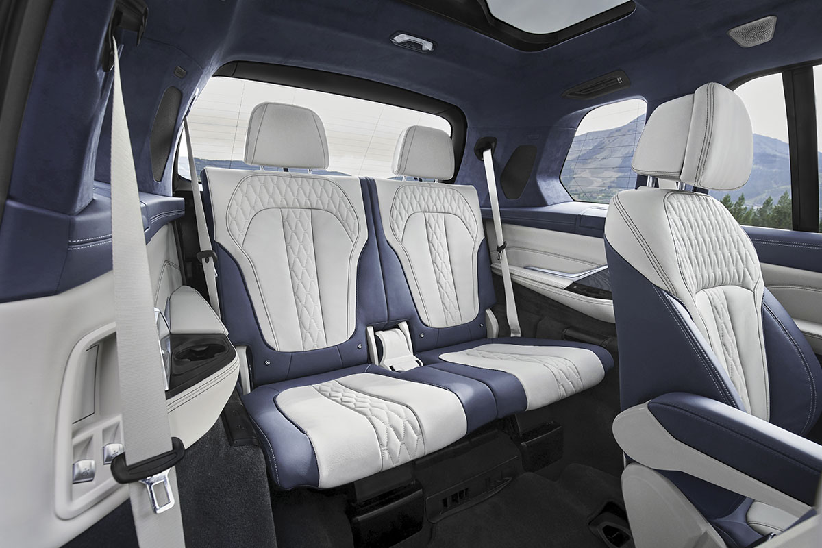 Le BMW X7 est là. C’est à ce jour le plus grand des modèles de la gamme X, avec 5,1 m de long, 2 de large et 1,8 de hauteur. Un gabarit qui met en exergue la nouvelle dimension dont il se revendique : celle du luxe, celle de l’espace et du confort. D’ailleurs, ce nouveau BMW X7 a un petit air de famille avec un certain Cullinan, notamment à l’arrière. La calandre semble gargantuesque est entourée de phares à projecteurs à diodes électroluminescentes. Les touches de chrome sont légion et renforcent ce côté exclusif. À l’intérieur, nous sommes dans du grand luxe : sellerie en cuir Vernasca, boiseries, volume de coffre correct (de 326 à 2120 L). L’habitacle est particulièrement spacieux, avec 3 rangées de sièges (7 places). Si toutefois vous êtes plus confort que famille nombreuse, la rangée du milieu peut être remplacée par 2 sièges confort individuels (option). Mais les occupants sont dans un véritable cocon : climatisation, éclairage d’ambiance, toit panoramique, et tuti quanti. Plusieurs assistances à la conduite de dernier cri viennent vous épauler (pack Drive Assist Pro de série et Park Assist, et toutes leurs options). L’instrumentation numérique est particulièrement présente avec un écran 12 '', et le BMW Live Cockpit ainsi que l’assistant personnel Intelligent BMW sont de la partie. Petite innovation : l’assistant de marche arrière qui, sous votre contrôle, peut reproduire à l’identique votre parcours des 50 derniers mètres. Sous le capot, côté essence, nous avons un 6 cyl en ligne de 340 ch pour 450 Nm de couple (X7 xDrive40i). Malheureusement, le V8 essence de 462 ch et 650 Nm de couple (X7 xDrive50i) n’est, à l’heure actuel, pas prévu en Europe. Côté diesel, nous avons un 6 cyl en ligne, qui développe soit 265 ch (xDrive30d) soit 400 ch pour 760 Nm de couple (X7 M50d). BMW propose une boîte de vitesse Steptronic à 8 rapports sur tous les modèles. Les prix débutent à partir de 94.400 €.