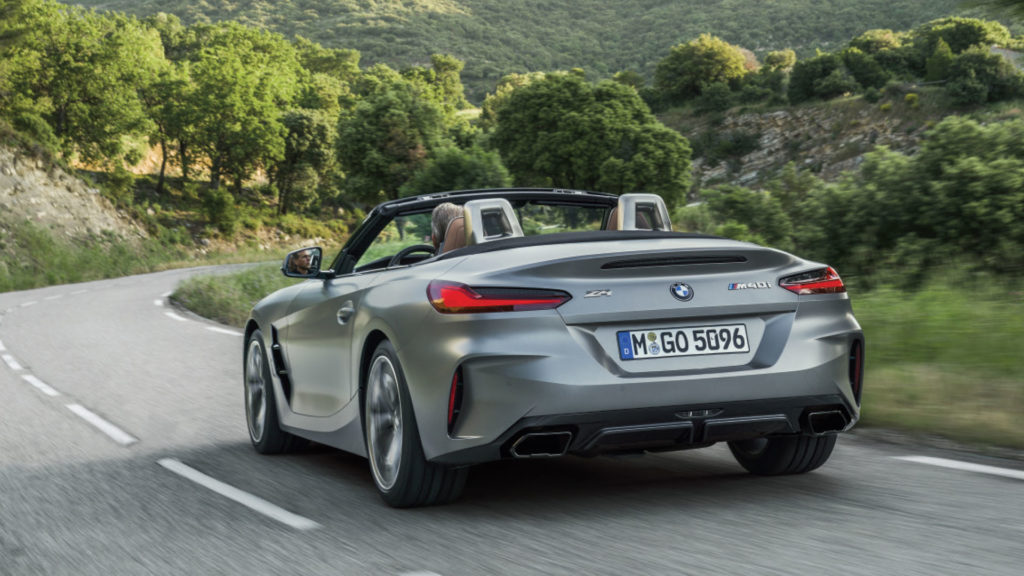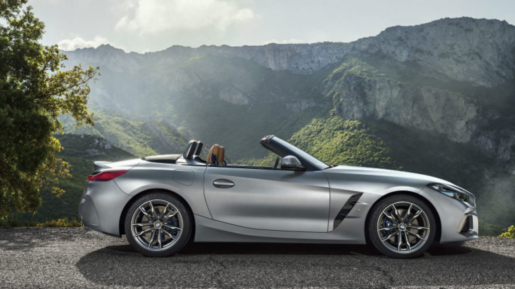 Voici la troisième génération de la BMW Z4. La Z4 M40i First Edition est la version la plus sportive du petit roadster, aux lignes particulièrement dynamiques et élancées. La calandre est une grille à fines mailles qui trône en fin d’un long capot, les prises d’air sont généreuses. Par ailleurs, ce nouveau Z4 marque un retour à la capote en toile électronique (meilleur confort acoustique et plus compacte, notamment). À l’arrière, nous notons comme un air de famille avec la toute récente Série 8. Et pourtant, sa conception a été partagée avec Toyota et sa fameuse Supra de cinquième génération.