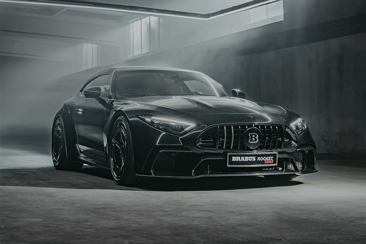Sur base de Mercedes-AMG SL63 S e-Performance, notre Brabus Rocket GTS possède un kit carrosserie assez explicite puisqu’entièrement faite en fibre de carbone, transformant la deux portes en véritable GT d’exception. Presque tous les éléments ont été redessinés (bouclier avant, jupes latérales etc...). Toutefois, afin de transformer le SL en shooting Brake, le toit escamotable est remplacé par un hayon sur lequel trône un petit spoiler façon “duck tail”. Les jantes également ont été modifiées avec un nouveau design en quinconce.