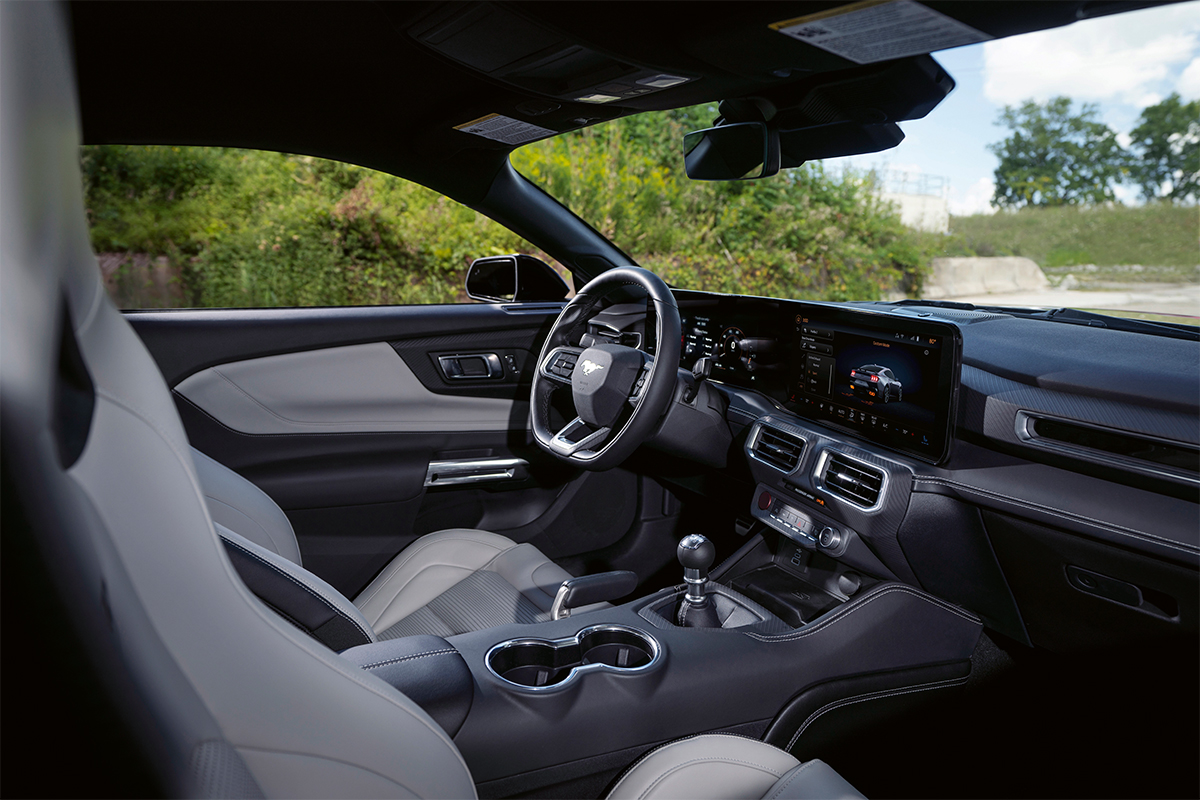 À l’heure du downsizing et de l’électrification, la Mustang version 2024 est proposée avec deux motorisations 100% thermiques, ce qui est assez rare pour être souligné. En effet, l’Ovale Bleu vous laisse le choix entre un 4 cylindres 2,3 L développant 300 chevaux ou entre l’impétueux V8 5,0 L (atmosphérique, s’il-vous-plaît) baptisé Coyote et développant la bagatelle de 500 chevaux et 570 Nm.