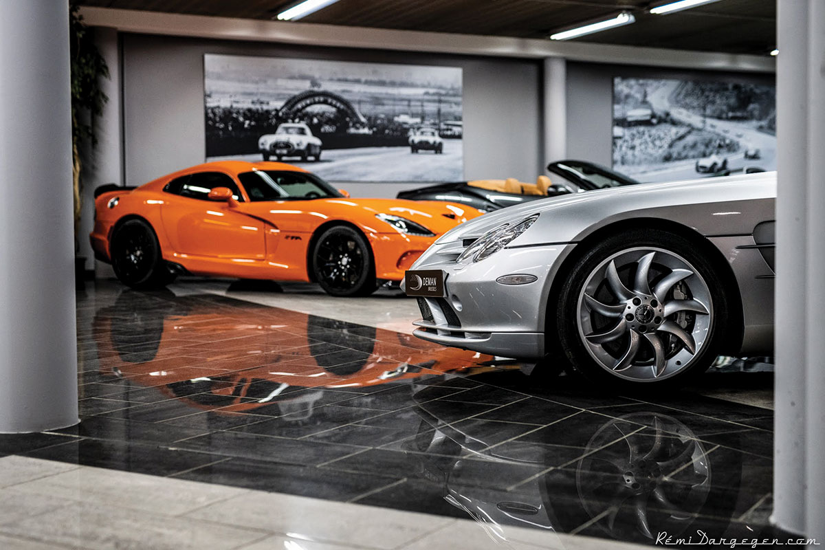 Ici Michel est allé au bout de son rêve avec des espaces thématiques comprenant à chaque fois un show room et un atelier dédié. On y trouve ainsi un espace Youngtimer avec son espace de restauration et son atelier, un show room de voitures de compétitions, toutes à la vente, avec l'espace de restauration et l’atelier dédié et comportant par exemple trois Ferrari F40 dont une spécialement préparée pour la course… Même système pour l’espace consacré aux véhicules de collection ou le show room consacré aux Smart avec par moins de 45 voitures, toutes différentes et toutes disponibles. Le prochain espace thématique est déjà en cours d’installation et il sera consacré aux automobiles italiennes. Ce show room « Dolce Vita » comme aime à l’appeler Michel, accueillera par exemple des dizaines d'Autobianchi, des Fiat 500, y compris les versions pick up et quelques modèles rarissimes.