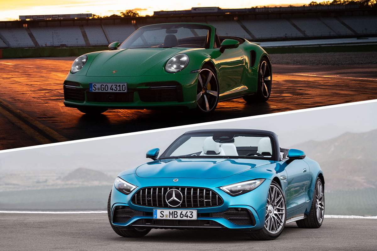 Voici donc un duel entre la Mercedes-AMG SL 63 4Matic+ et la Porsche 911 type 992 Turbo cabriolet ! La Mercedes est la voiture la plus récente de notre duel, et l’on pourrait donc s’attendre à ce qu’elle batte à plate couture sa concurrente de Stuttgart. Et pourtant, le match est serré, comme vous allez le voir !