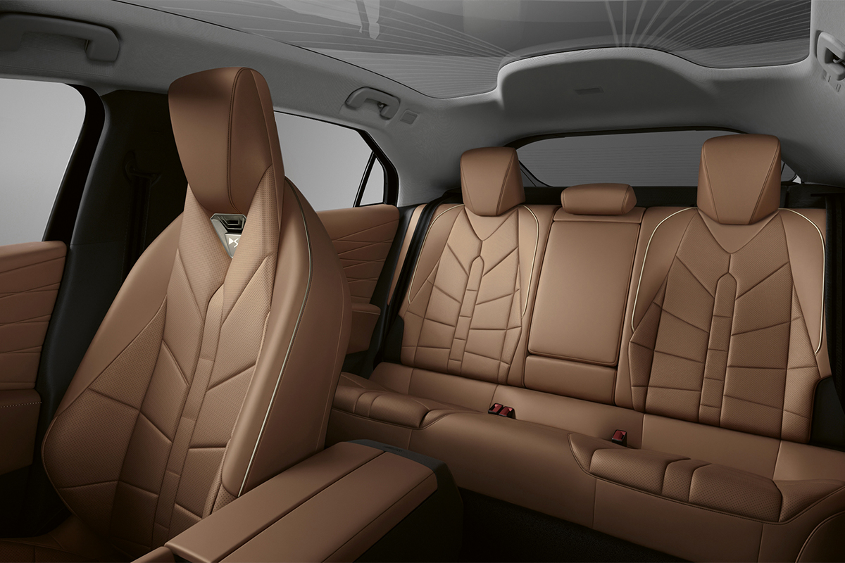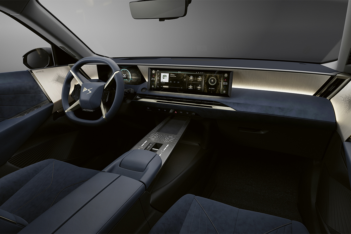 La DS8 ne lésine pas avec l’ambiance luxueuse en utilisant des matériaux de qualité, comme le cuir Nappa ou l’aluminium texturé et un toit de verre (optionnel). Les portes arrière intégrées au pilier C s’ouvrent facilement vers ce petit cocon de confort. Avec un empattement généreux de 2,9 mètres, le confort des occupants ne devrait pas poser de problèmes. D’autant plus que les sièges sont chauffés et ventilés et disposent même de fonctions de massage. Le coffre de 620 litres est quant à lui accessible par un généreux hayon à commande électrique. L’autonomie maximale est annoncée à 750 km. L’auto se veut à la pointe de la technologie, avec un écran tactile de 16 pouces au centre du tableau de bord et intègre l’affichage tête haute avec réalité augmentée (avec vision nocturne). La DS8 intègre ChatGPT, de nombreux branchements et un système de navigation intelligent permettant de planifier les arrêts. DS annonce jusqu’à 700 km d’autonomie.