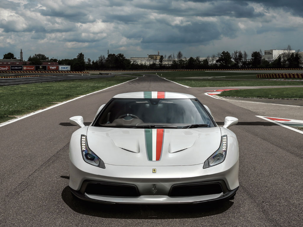 Ce qui change ? La carrosserie est en aluminium, avec des boucliers en fibre de carbone à l’avant et à l’arrière. Les montants A sont traités en noir pour donner un effet de « visière de casque ». Les montants C sont également revus, alors que de nouvelles prises d’air et un nouvel aileron ont fait leur apparition. Les feux avant et arrière sont également revus et, enfin, cette 458 MM profite de jantes uniques.