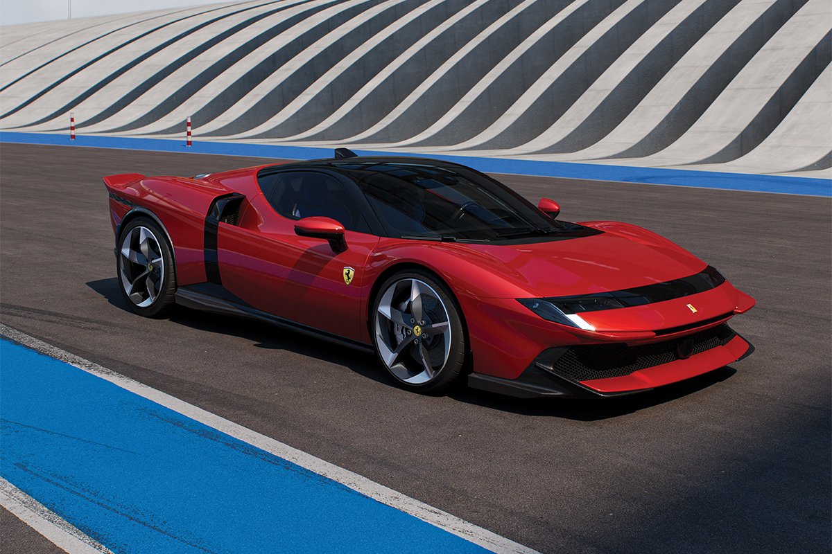 Sous le capot, Ferrari a glissé le V8 4,0 L biturbo de la SF90 (amélioré, bien évidemment, avec les plus gros turbos sur une Ferrari de série à ce jour) et associé à trois moteurs électriques développant une puissance cumulée de 1050 chevaux. Les performances sont en hausse par rapport à sa devancière grâce à une suspension revue, un “torque vectoring” retravaillé, la présence du système FIVE de la F80 ou encore des voies arrière élargies. Là où la SF90 avait besoin de 2,6 secondes, désormais seulement 2,25 secondes lui sont nécessaires pour abattre le 0 à 100 km/h. L’auto génère 415 kg d’appui à haute vitesse.