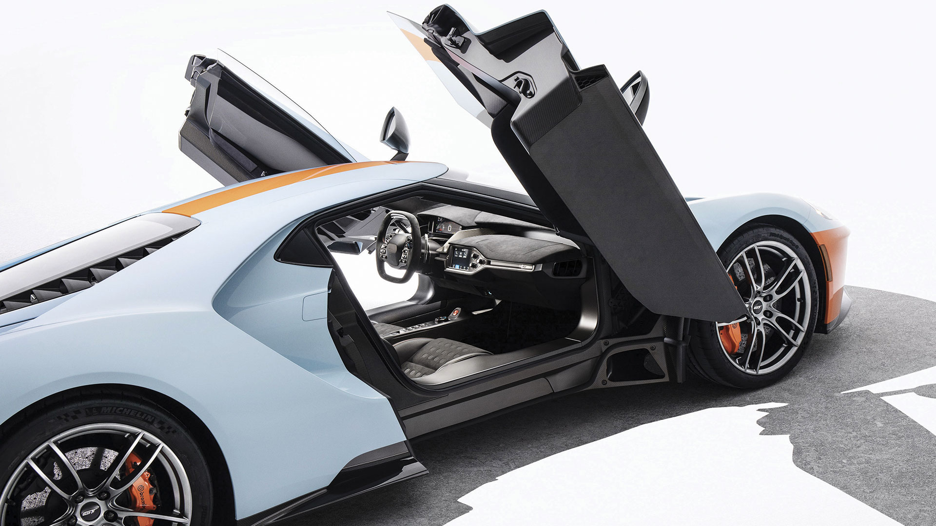 Voilà 2 ans que la version finale de la Ford GT a été dévoilée au salon de Genève. Depuis, les premiers exemplaires clients commencent à être livrés dans le monde, et notamment en Europe. Beaucoup ont choisi des livrées historiques, qui rappellent celles des mythiques Ford GT40 ayant couru et gagné aux 24 heure du Mans. Conscient du phénomène et souhaitant jouer sur la beauté et la nostalgie de ces livrées, Ford a souhaité présenter une nouvelle édition limitée de sa Ford GT : la Heritage Edition Gulf. Après les Heritage Edition 66 et GT 67 Heritage, la Ford GT version 2018 s’inspire cette fois-ci de la très célèbre livrée GULF. Il s’agit de la livrée de la GT40 ayant gagné les 24 heures du Mans en 1968, et ce véhicule fête donc les 50 ans des victoires de 68 et 69 dans la course sarthoise. Le fabricant de lubrifiant GULF, dont les couleurs bleu ciel et orange sont reconnaissables partout à travers le monde, font partie intégrante de la carrosserie, notamment au niveau du museau et des étriers de freins Brembo orange. Quelles sont les spécificités de cette édition limité ? Pour commencer, le modèle reçoit des jantes noires en aluminium forgé spécifiques de 20 pouces, ainsi que des rétroviseurs argentés. À l’intérieur, sièges et planche de bord sont en alcantara noir, avec des surpiqûres orange et bleues. Les sièges ont un design rétro, inspiré des sièges de la GT40 de 1968. Ford n’a pas communiqué sur le nombre d’exemplaires prévus pour ce véhicule hommage. Toutefois, avec à peine 500 unités de la Ford GT à travers le monde, on pourrait légitimement se demander qu’est-ce qui pousserait un propriétaire à opter pour une livrée Heritage au lieu de faire “sa” propre livrée. Quoiqu’il en soit, le prix n’a pas été communiqué par le constructeur américain. En revanche, nous savons que le véhicule pourra soit arborer le numéro 9 (disponible dès 2019) soit le numéro 6 (disponible dès 2020).