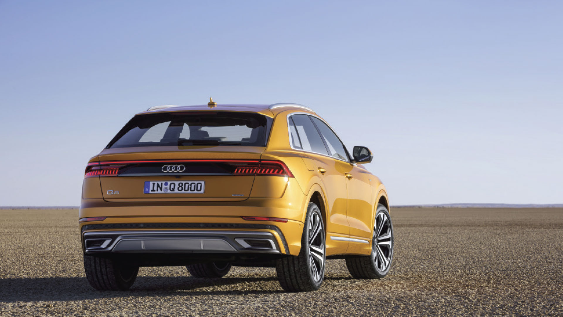 La toute nouvelle Audi Q8 est enfin présentée au monde. Dérivée du Q7, le Q8 correspond à une philosophie différente. Il fait partie de ce qu’on appelle les SUV coupé, avec une ligne de toit fuyante et des vitres sans montants. Ce modèle est un rival direct des BMW X6 ou Mercedes-Benz GLE. Visuellement, le nouvel SUV coupé de la marque aux anneaux reprend le langage inauguré par l’Audi A8. Par exemple, cette nouvelle calandre octogonale avec six barrettes verticales, grosses entrées d’air, ou encore des phares avant très fins… À l’arrière, la somptueuse bande lumineuse qui s’étend de feu à feu est particulièrement réussie.