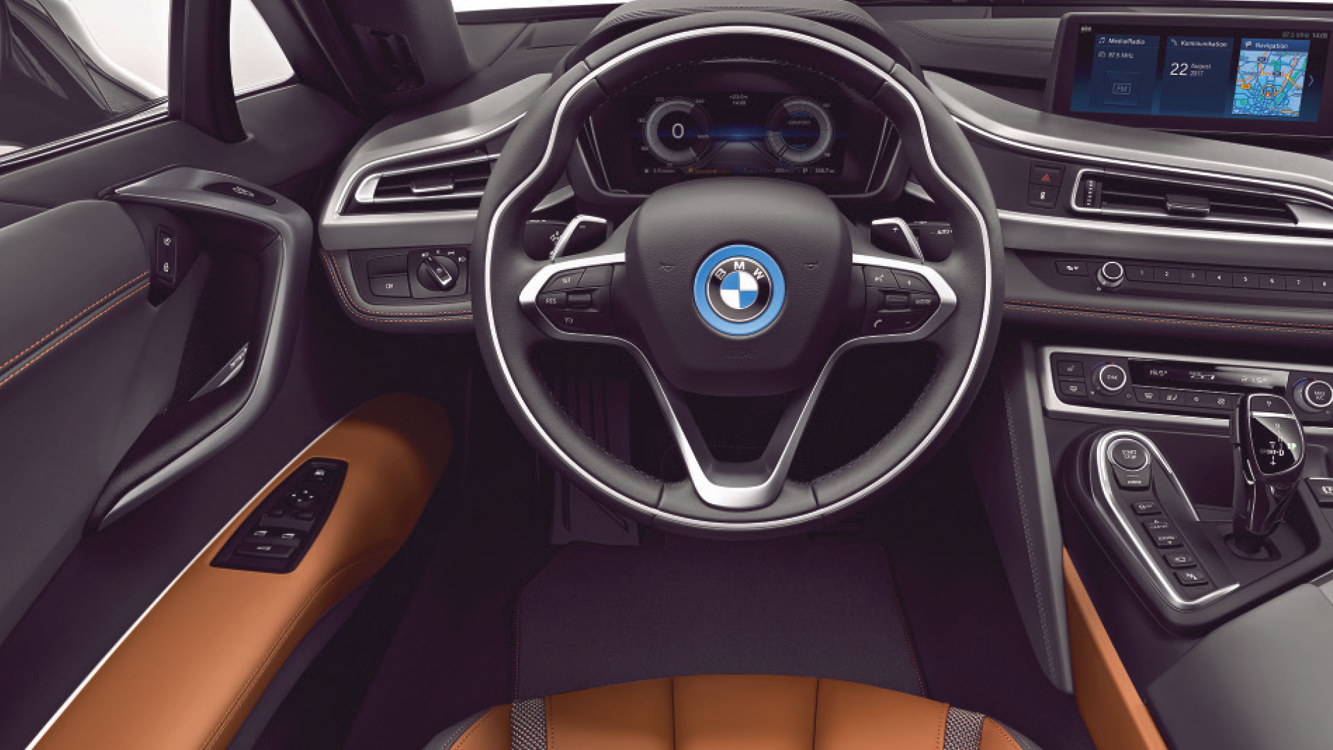 La version roadster devrait arriver sur nos routes en 2018. La BMW i8 incarne la mobilité du futur, avec un design déjà iconique. Peu importe votre choix de coloris, elle attirera l’attention sur elle quoiqu’il arrive tel un phare dans la nuit. L’auto est le mariage de la forme intemporelle mais aussi de la fonctionnalité. Après tout, il s’agit de la voiture de sport hybride la plus vendue au monde. À l’intérieur, l’intérieur reprend les lignes de la carrosserie, fluides, créant ainsi un poste de conduite futuriste à l’ambiance sportive. Les commandes sont agencées de façon ergonomique, afin de procurer la meilleure expérience à son volant. Légère, libre, la BMW i8 est une réussite sans compromis, qui porte en elle toutes les dernières technologies d’avant-garde, qu’il s’agisse d’équipements ou d’aides à la conduite.