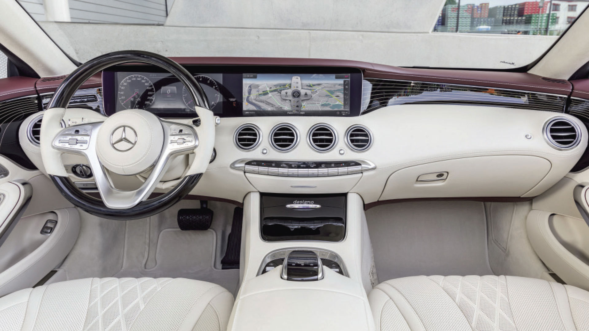 Esthétiquement, la ligne raffinée de la Classe S se démarque de toute la gamme Mercedes. Son design est envoûtant. Le modèle traduit une présence particulièrement imposante, notamment à travers la magnifique calandre diamant en 3D. Les doubles sorties d’échappement arborent une finition chromée. La capote quant à elle est insonorisée, et permet de profiter de l’expérience Classe S, que le toit soit ouvert ou pas. Véritable vaisseau amiral de la marque, un florilège d’aides à la conduite sont proposées sur le modèle : caméras panoramiques, avertisseur de limitation de vitesse et de franchissement de ligne ou encore le freinage d’urgence… L’expérience au volant se veut sereine, afin de profiter d’être les cheveux au vent sans encombre.