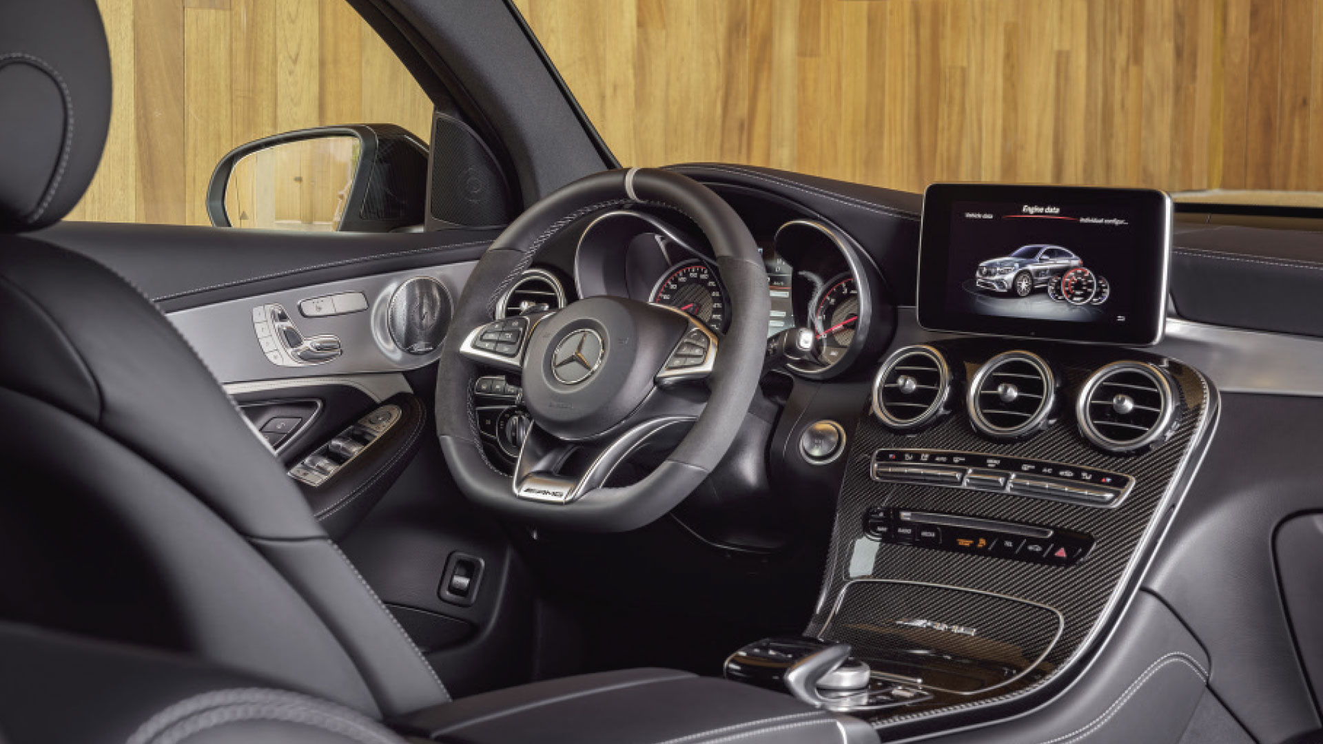 Mais également très confortable, car il s’agit d’un 5 portes pouvant accueillir jusqu’à 5 passagers et offrant un espace de vie supérieur à ceux des coupés sportifs traditionnels. Le confort de chargement est accru, la position d’assise est plus élevée. En matière de technologie, comme la plupart des modèles de la gamme GL, le GLC bénéficie du Mercedes-Benz Intelligent Drive, qui comporte tout un tas d’aides à la conduite (assistant de stationnement avec caméras 360 degrés, freinage d’urgence, affichage tête haute, protection de collision arrière, suspension pneumatique (le confort de roulement est clairement digne d’un modèle à l’étoile).