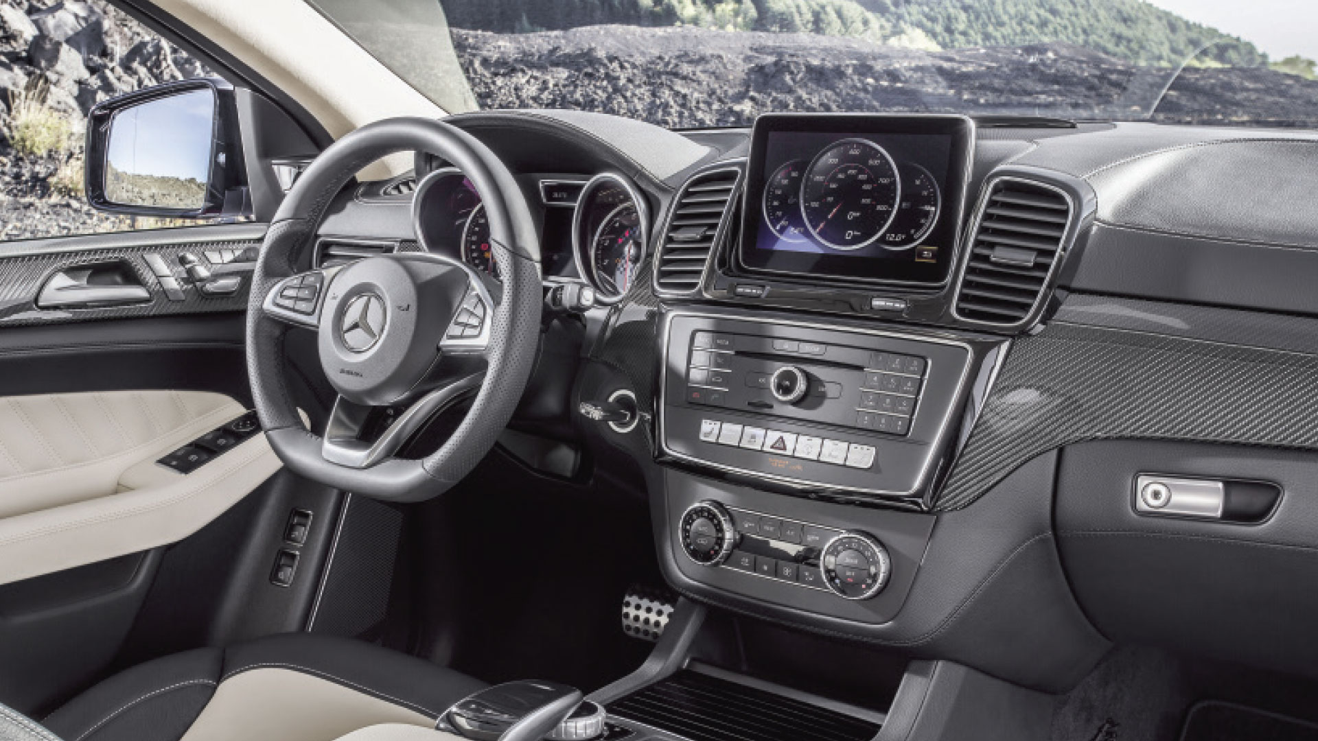 À l’intérieur, le Mercedes-Benz GLE offre une position de conduite confortable et ergonomique, du fait de sa position d’assise surélevée. Véritable 5 places, le véhicule est parfaitement adapté pour transporter des passagers dans un confort extrême. Son coffre est gargantuesque avec près de 690 L. Sa planche de bord reprend celle du ML de troisième génération, mais elle a été légèrement modernisée. En matière de technologie embarquée, le nouveau GLE bénéficie du Mercedes-Benz Intelligent Drive, car conduire, c’est aussi se ressourcer. Par conséquent, le modèle vient équipé d’aides à la conduite (aide au stationnement, freinage d’urgence etc...). Pour faire face aux vicissitudes du terrain, le Dynamic Select vient proposer plusieurs choix de motricité (confort, sport, offroad).