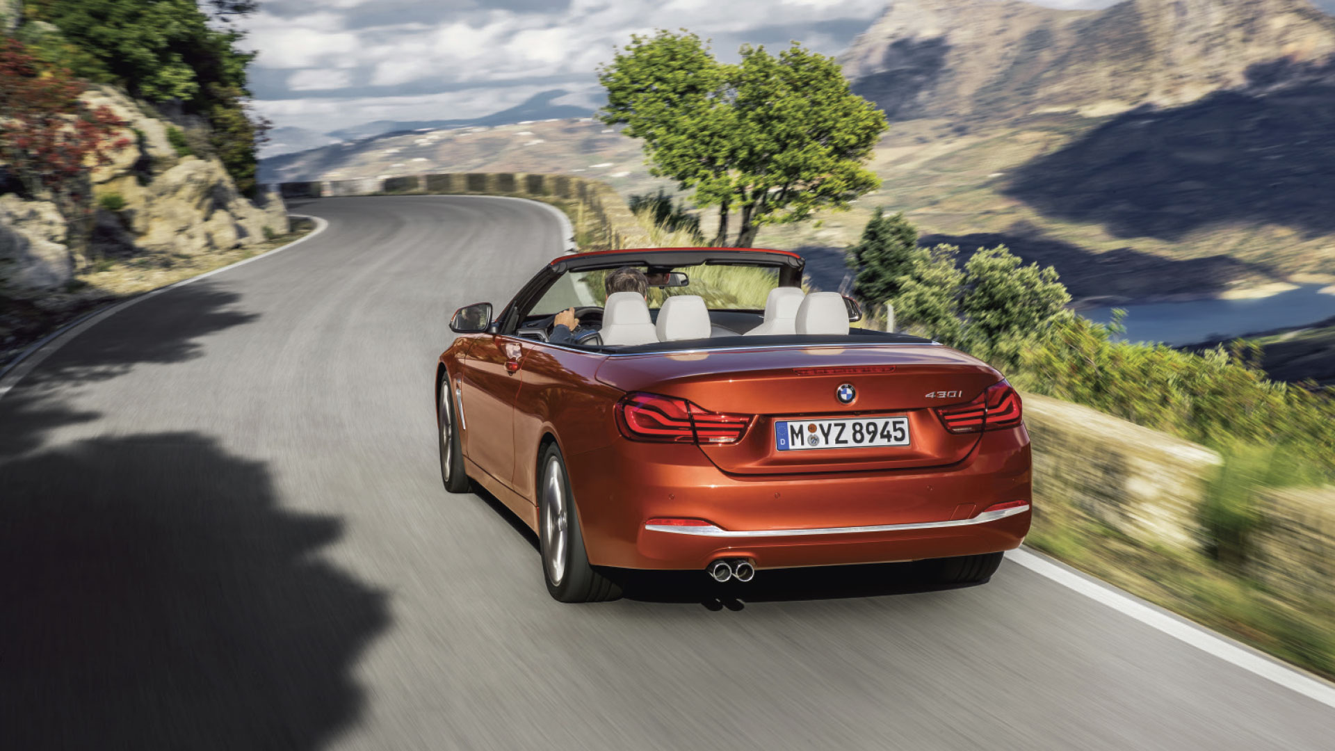 La liberté automobile Rouler les cheveux au vent n’a jamais été aussi agréable qu’à bord d’une BMW Série 4 Cabriolet. Après tout, cette concurrente des A5 et Classe C cabriolet présente un dynamisme enthousiasmant, associés à un design aérodynamique remarquable. Il est rare qu’un véhicule puisse communiquer et inspirer à ses passagers une telle liberté. Cette propulsion (typique chez BMW) possède une répartition des masses entre les deux essieux optimale pour un cabriolet, qui garantit une tenue de route parfaite (cependant, seule la 440i possède les quatre roues motrices). Esthétiquement, la silhouette en biseau converge vers la poupe expressive, afin d’exprimer au mieux le dynamisme envoûtant de ce modèle, et ce, que le toit rigide soit ouvert ou fermé. Dans l’habitacle, nous retrouvons un confort de première classe, digne d’une auto à ciel ouvert. Classique, la finition est impeccable. Le toit rigide rétractable accomplit sa tâche en une petite vingtaine de secondes, jusqu’à 18 km/h (ce qui peut sembler assez lent, tout compte fait). Cependant, l’auto possède une rigidité exceptionnelle. Peu de vibrations parasites, presque aucun courant d’air non désiré… Pour faire simple, il s’agit d’une voiture idéale pour rouler les cheveux au vent, en été ou en hiver d’ailleurs. Les motorisations sont vigoureuses et efficientes. La boîte de vitesse automatique StepTronic à 8 rapports (en option) garantit une conduite dynamique exceptionnelle, et ce, malgré les 200 kg en plus par rapport à la version Coupé.
