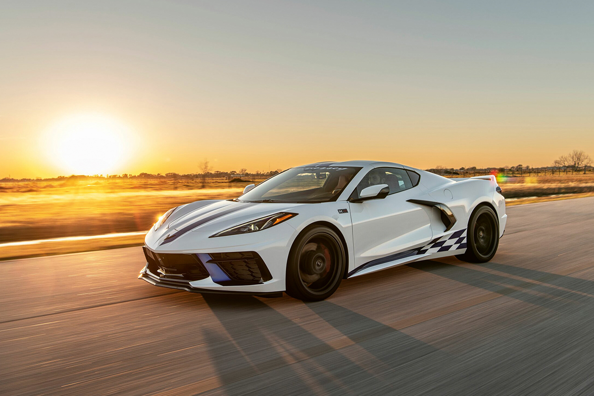 Sous le capot, nous trouvons les principales améliorations avec notamment l’addition d’une suralimentation par compresseur centrifuge, couplée à une reprogrammation moteur. Avec cela en tête, la Hennessey H700 développe 717 chevaux pour un couple maximal de 865 Nm. L’auto conserve sa boîte de vitesses double-embrayage à huit rapports. Une belle avancée par rapport à la C8 Stingray standard puisque cette H700 est plus puissante qu’une C8 Z06 !