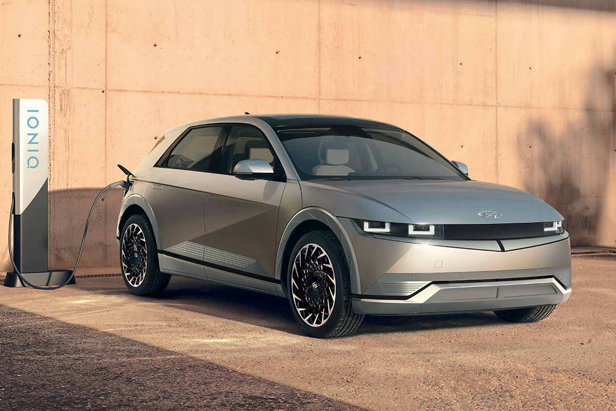La Hyundai IONIQ 5 est un SUV compact de 4,65 mètres de long reposant sur une nouvelle plateforme spécialement dédiée aux futurs véhicules électriques de la marque, la plateforme E-GMP. L’auto possède un design très lisse, des roues en alliage aérodynamique, une silhouette nette et des surfaces propres. Ses feux LED rectangulaires sont d’ores et déjà un élément caractéristique des futurs modèles IONIQ.