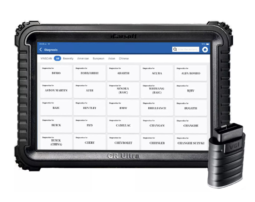 Pour les amateurs de voitures européennes et les ateliers haut de gamme, iCarsoft CR Ultra est un rêve devenu réalité. En effet, il prend en charge des marques accessibles telles que Peugeot ou Opel mais également des marques de luxe comme Bentley, Rolls-Royce et Maserati. Le petit plus ? Les supercars Bugatti, Ferrari ou Lamborghini entrent également dans le champ de compétences de l’iCarsoft CR Ultra.