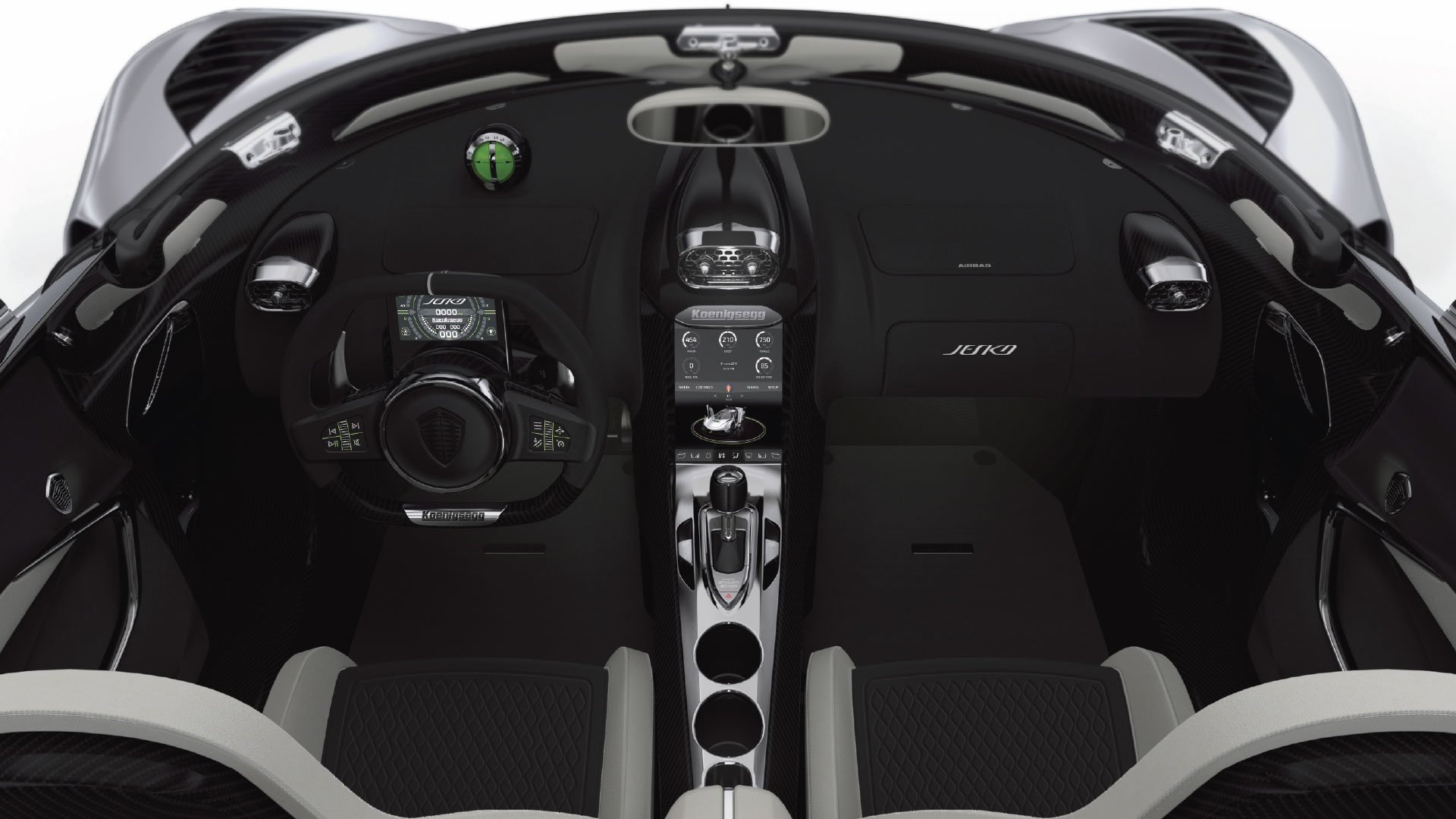 La Koenigsegg Jesko hérite d’un style similaire à celui de la Regera, plutôt arrondi, malgré un châssis entièrement nouveau. Son nouvel aileron arrière incurvé est particulièrement imposant et rappelle la One:1. Mais c’est surtout dans l’habitacle que la Jesko. La Koenigsegg Jesko embarque plusieurs nouveautés technologiques, comme une nouvelle boîte de vitesse “Light Speed Gearbox” avec un système multi-embrayage à neuf rapports. Concrètement, cette boîte permettrait de passer les rapports dans le désordre, grâce aux multiples embrayages.