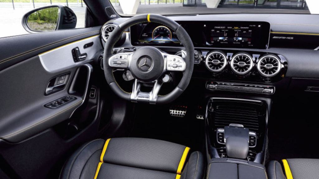 Sous le capot, les ingénieurs AMG se sont surpassés avec la variante S (seule disponible en France, nous le rappelons). Le 4 cylindres de 2,0 L développe 421 ch pour un couple maximal de 500 Nm. La transmission intégrale 4MATIC est accouplée à une boîte de vitesse à double embrayage Speedshift DCT 8G. L’exercice du 0 à 100 km/h ne prend désormais que 4 s pour le CLA 45 S berline. La vitesse de pointe est bridée à 270 km/h.