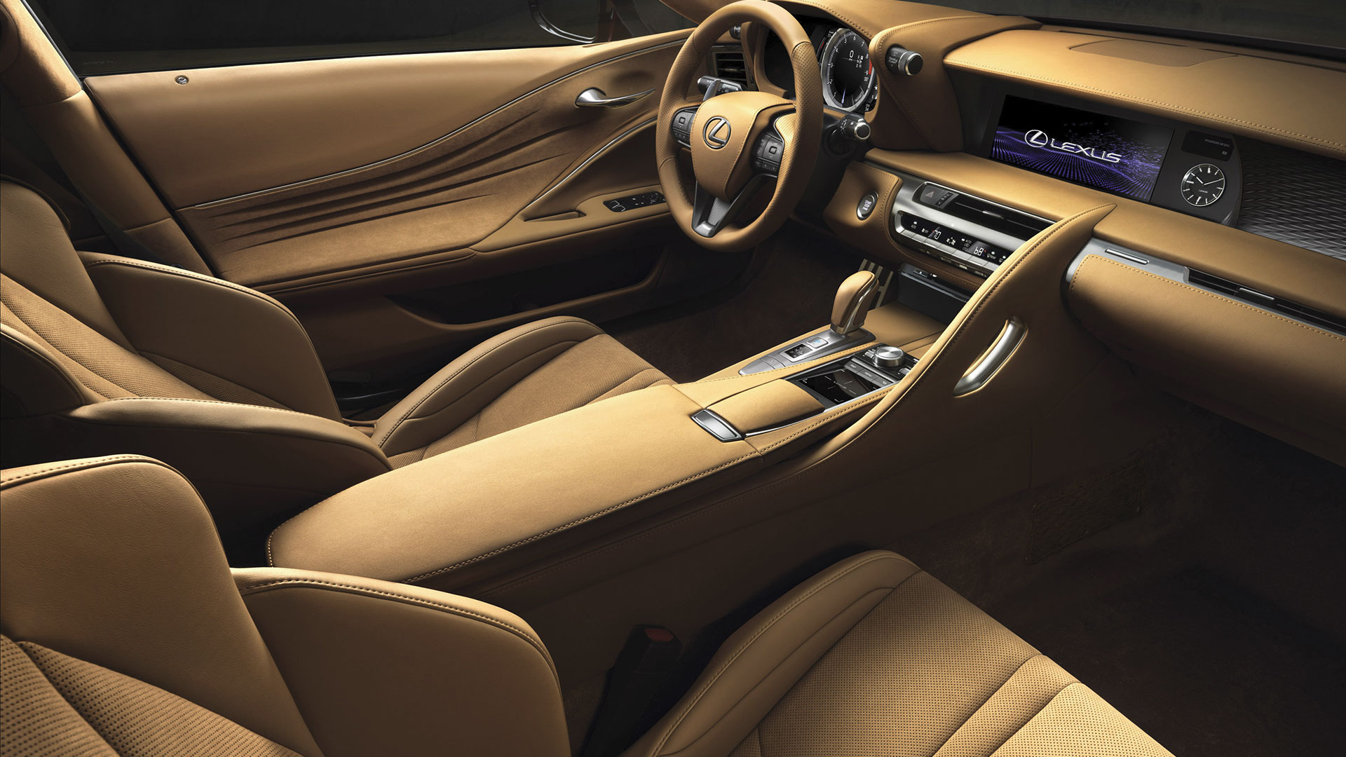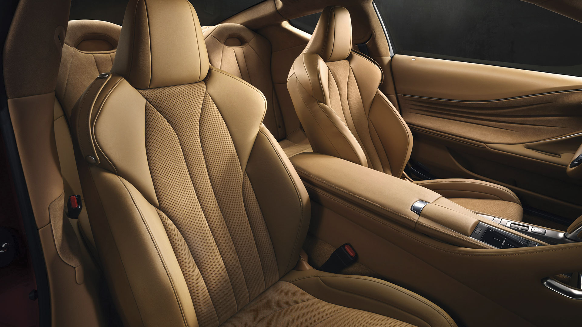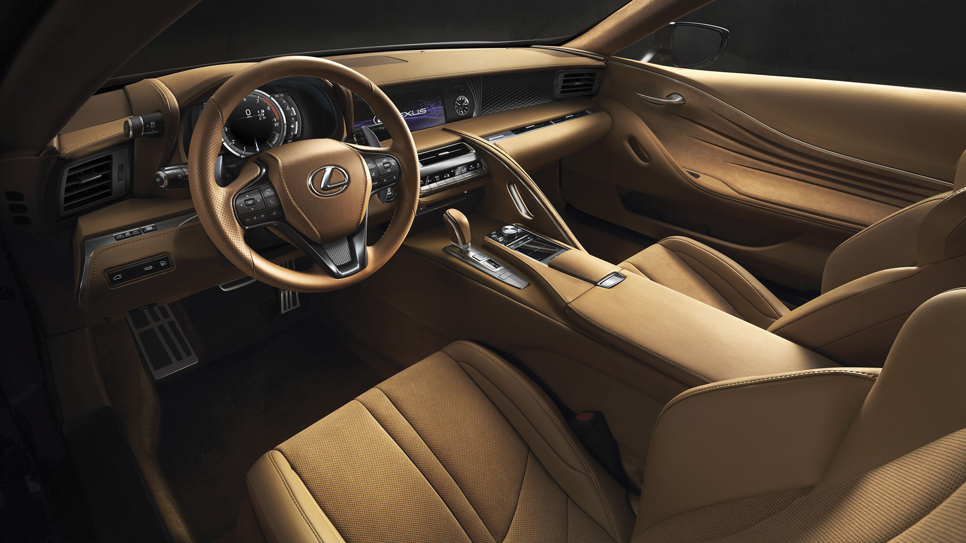 Dans lâhabitacle, lâaccueil est impérial, et la finition est impressionnante. La philosophie de lâhospitalité japonaise nâest donc pas une légende. Cuirs, surpiqûres, alcantara, nous sommes décidément dans du haut-de-gamme, où chaque détail compte. Comme souvent, ce petit coupé est un 2+2, mais les places arrière sont des places dâappoint, non adaptées pour les longs trajets ou les grands gabarits. En matière de technologies embarquées, le Lexus LC Coupé nâest pas en reste. On y retrouve le très bon système audio Mark Levinson et ses 13 hauts-parleurs, ou encore un pavé tactile pour le système multimédia et lâanneau central mobile hérité de la LFA. Plusieurs aides à la conduite viennent renforcer le sentiment de qualité : sécurité active, précollision PCS, régulateur de vitesse adaptatif, maintien de file, alerte de franchissement, lecture des panneaux de signalisation⦠Nous sommes dans un véritable bijou de technologie.