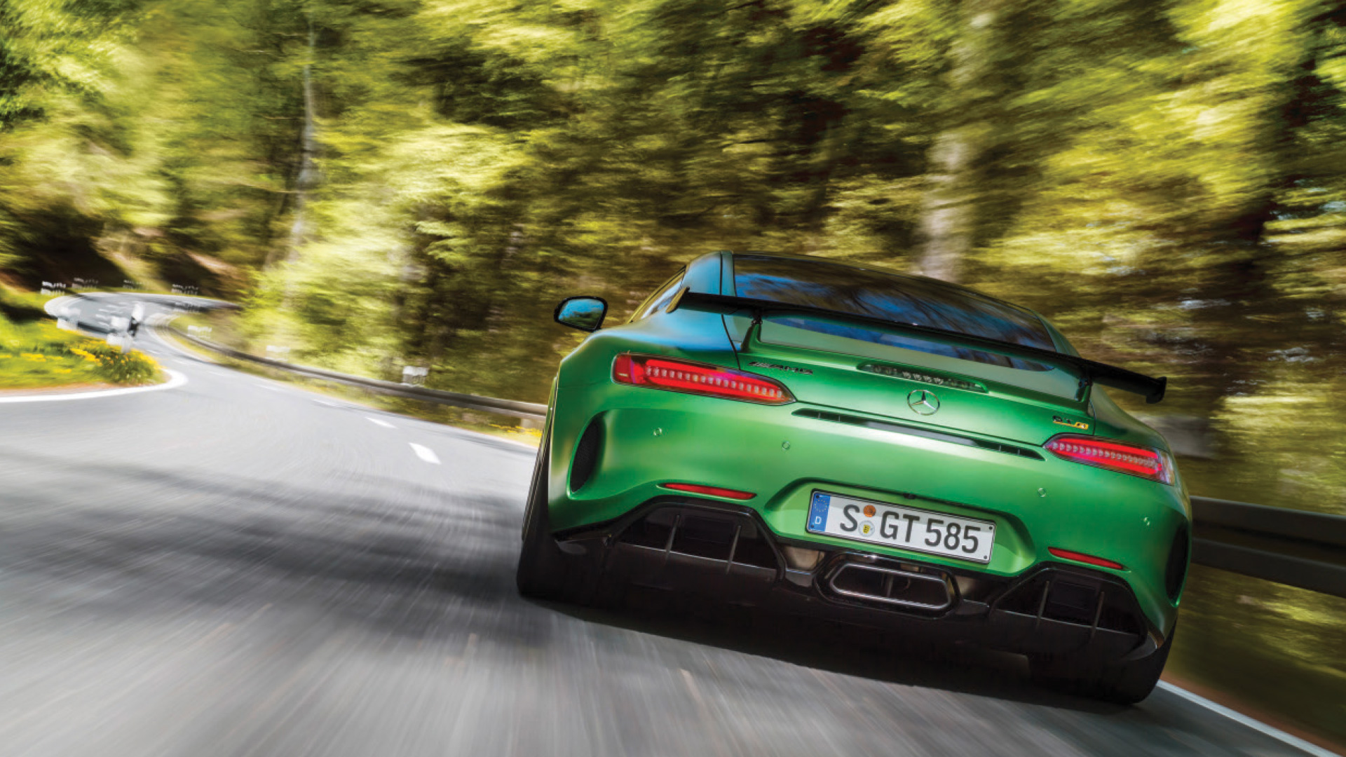 Dernière née dans la gamme de la Mercedes AMG GT, l’AMG GT-R est sans aucun doute la plus excessive (avant que n’arrive sa version Black Series). Mercedes s’est lourdement inspiré de ses multiples succès en sport automobile pour développer cette AMG GT-R, qui s’avère être une réussite. L'aérodynamisme est actif sur ce modèle, avec des lamelles en carbone motorisées. Ce modèle est la symbiose entre une voiture ultra-sportive qui saura faire du pied aux pilotes chevronnés, et la voiture de tous les jours qu’est l’AMG GT. La nouvelle boîte robotisée à 7 vitesses procure une meilleure conduite, plus souple. Le son particulièrement rauque du moteur, accompagné de rétrogradages qui font sursauter même les plus téméraires, est un véritable plaisir. 585 ch - 320 km/h - 174,800 € Fiche Technique : Moteur : V8 Cylindrée : 3982 cm3 Puissance : 585 ch Couple : 700 Nm 0-100 km/h : 3,6 secondes