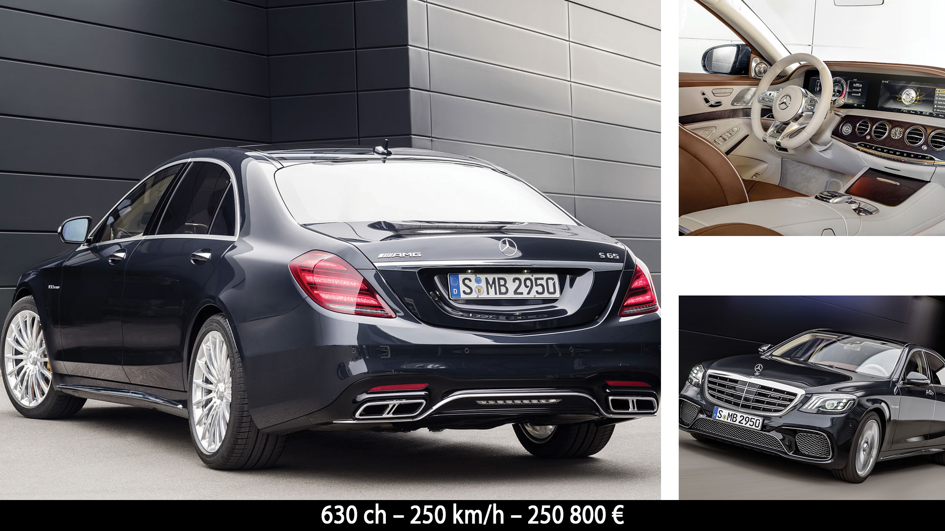L’extérieur charismatique impressionne par son aura de prestige. L’avant en particulier, avec ses nouveaux phares MULTIBEAM LED en option, est encore plus marquant. Découvrez la grande première d’une figure exceptionnelle : la Nouvelle Mercedes Classe S Berline. Un véhicule qui allie la tradition et la technologie d’avenir à un confort de voyage incomparable. Découvrez l’essence de l’élégance et du luxe. Sérénité absolue. La gamme de la Classe S Coupé est enrichie par la Mercedes-AMG S 65 Coupé, un modèle exclusif offrant un déploiement de puissance exceptionnel. Bénéficiant de nombreuses mesures de perfectionnement du confort et de la technologie, ce véhicule d'exception représente le fer de lance automobile dans le segment des coupés hautes performances. Disponible fin 2017. Fiche technique: Moteur V12 Cylindrée 5 980 cm3 Puis. 630 ch Couple 1 000 Nm 0 – 100 km/h 4,3 s