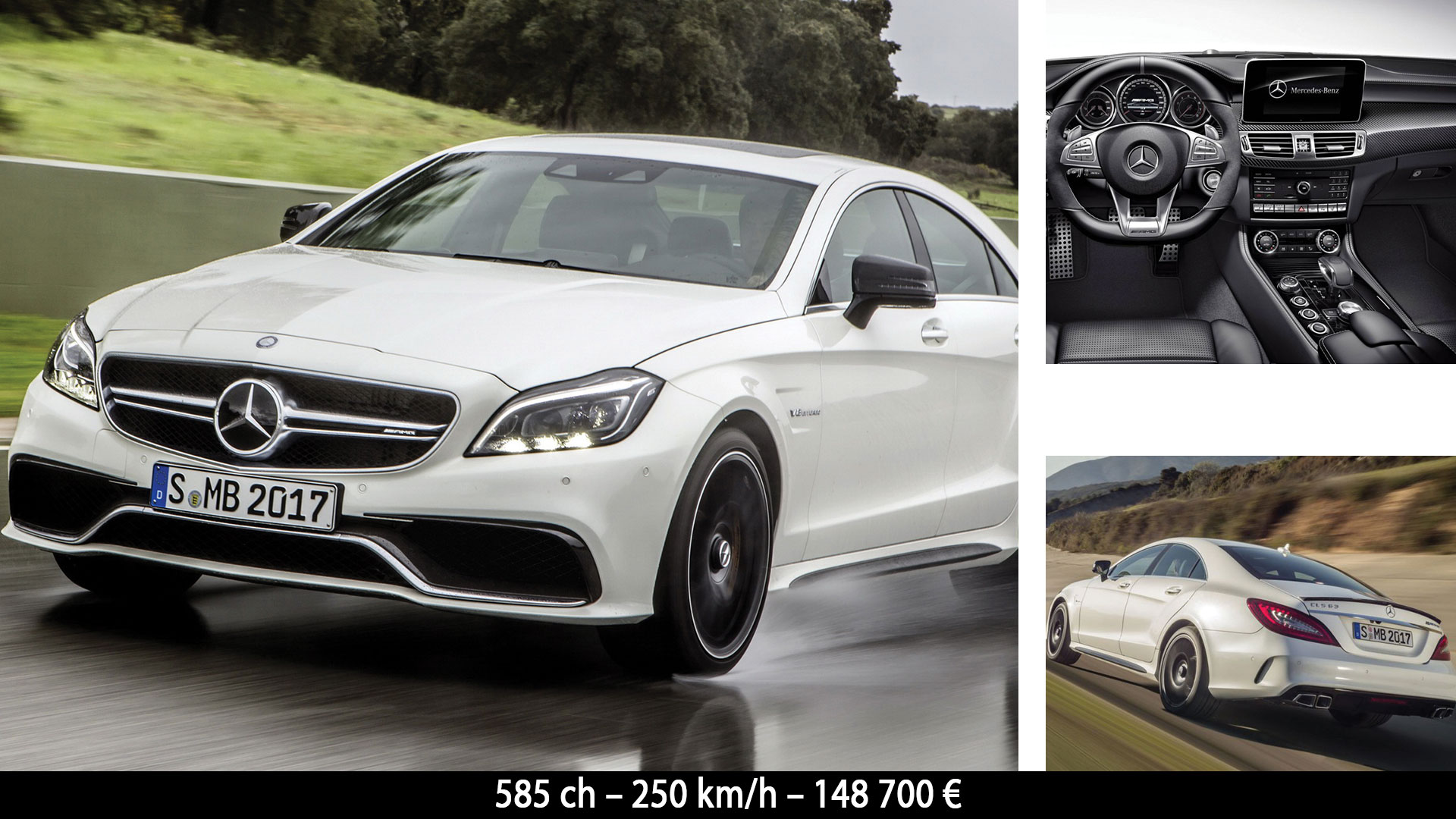 Démonstration de force Son allure laisse immédiatement présager de ses performances. Le Mercedes-AMG CLS 63 S 4MATIC Coupé fait la démonstration de sa supériorité avec une sérénité souveraine. De nombreux détails extérieurs signalent de quelles performances ce véhicule est capable. A l'instar du modèle S. Ce sont les petits détails raffinés qui font du Mercedes-AMG CLS 63 S 4MATIC Coupé ce qu'il est : le décuplement de la sportivité même là où cela ne semblait guère possible Fiche technique: Moteur V8 Cylindrée 5 461 cm3 Puis. 585 ch Couple 800 Nm 0 – 100 km/h 3,6 s