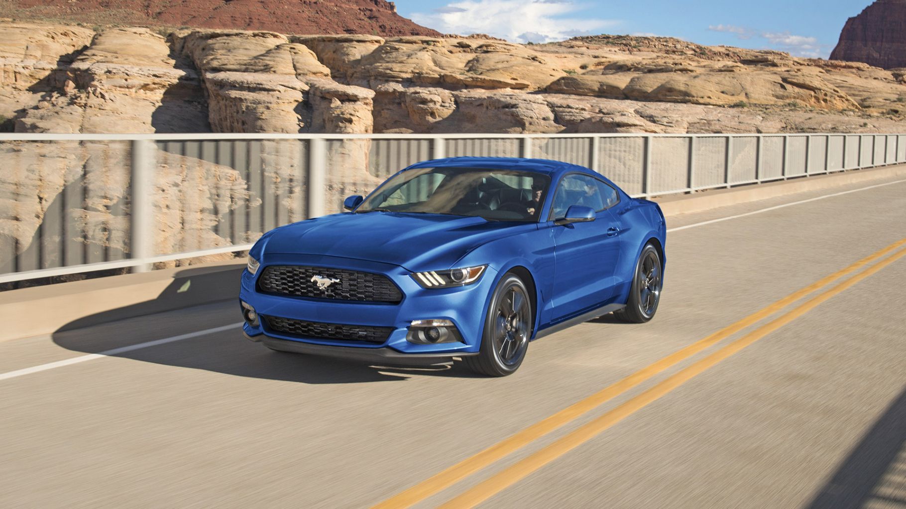 A tout seigneur, tout honneur ! (421 ch – 250 km/h – 42 900 €) À l'avant, la Ford Mustang arbore une grille de calandre en nid d'abeille et un capot sculpté. Tandis qu'à l'arrière, elle met en avant les éléments distinctifs qui ont fait sa légende. Autant de partis pris assumés qui imposent définitivement un style unique. La Ford Mustang change notre vision du monde. Impossible de rester indifférent. Le capot aux lignes allongées de la version Fastback conserve l'esprit purement Mustang tout en lui conférant une touche de modernité. La légère inclinaison de la partie arrière réduit la résistance afin que la voiture fende l'air avec fluidité et les prises d'air avant améliorent son aérodynamisme. Les feux arrière à LED à 3 barres, le logo Pony » pour la version EcoBoost ou le logo GT » pour la version V8 ainsi que la double sortie d'échappement de chaque côté du diffuseur sont des éléments distinctifs qui définissent l'identité et le tempérament de la nouvelle Ford Mustang. Ford Mustang Convertible La Ford Mustang Convertible est décrite par Joel Piaskowski, concepteur en chef chez Ford, Comme a beautiful horizontal bullet » - (un magnifique boulet de canon). Elle vous fera savourer l'ivresse de la conduite à ciel ouvert. Décapotez en moins de 10 secondes et découvrez le monde comme vous ne l'avez jamais vu. La capote triple épaisseur se range derrière la banquette arrière dans un emplacement spécialement conçu afin de préserver les courbes épurées et l'aérodynamisme de la voiture. Son style unique et authentique permet à la nouvelle Ford Mustang de se distinguer. Vous ne passerez pas inaperçu. Fiche technique : Moteur : V 8 Cylindrée : 4 951 cm3 Puis.admin : 33 Puis. : 421 Conso : 12,00 CO2 : 281 Tarif : 42 900 €