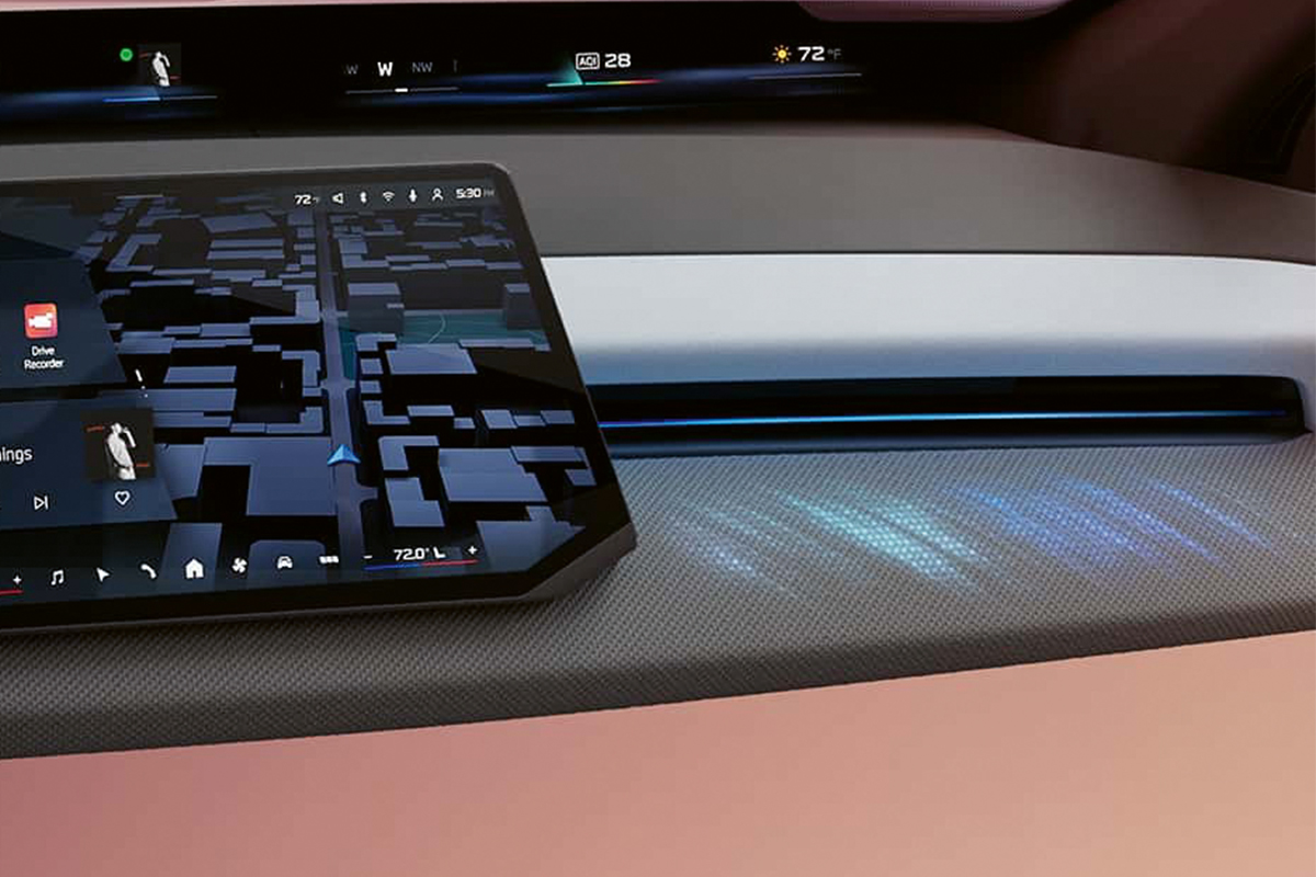 Le constructeur allemand ambitionne de révolutionner l’infodivertissement au sein de ses véhicules en développant l’affichage tête-haute. Le nouveau système (pour l’heure à l’état de concept) sera disponible de série sur la plateforme Neue Klasse, et va permettre l’affichage tête-haute en vision panoramique des informations normalement affichées sur les combinés d’instrumentation. Le pare-brise devient désormais un écran à part entière dans cette nouvelle mise à jour de BMW iDrive à travers le nouveau système d’exploitation X. Arrivée prévue au courant de l’année 2025.