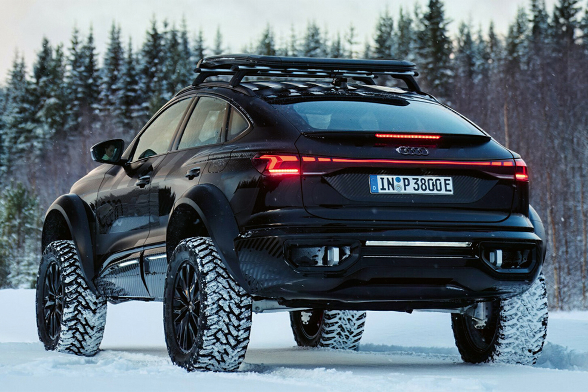 L’appel vers l’inconnu et les terrains difficiles semble revenir en force chez les constructeurs de voiture. Une tendance nouvelle qui explique ce concept de tout-terrain extrême développé par Audi sur base de Q6 électrique. Tout a été modifié dans un but avant tout fonctionnel mais également visuel. L’auto est reconnaissable à sa face avant plus fine et très lumineuse, ou encore sa galerie de toit intégrant des feux LED mais surtout à ses essieux à portique permettant à ses immenses pneus Venom spécifiques d’avoir une grande garde au sol, adaptée à tous les terrains.