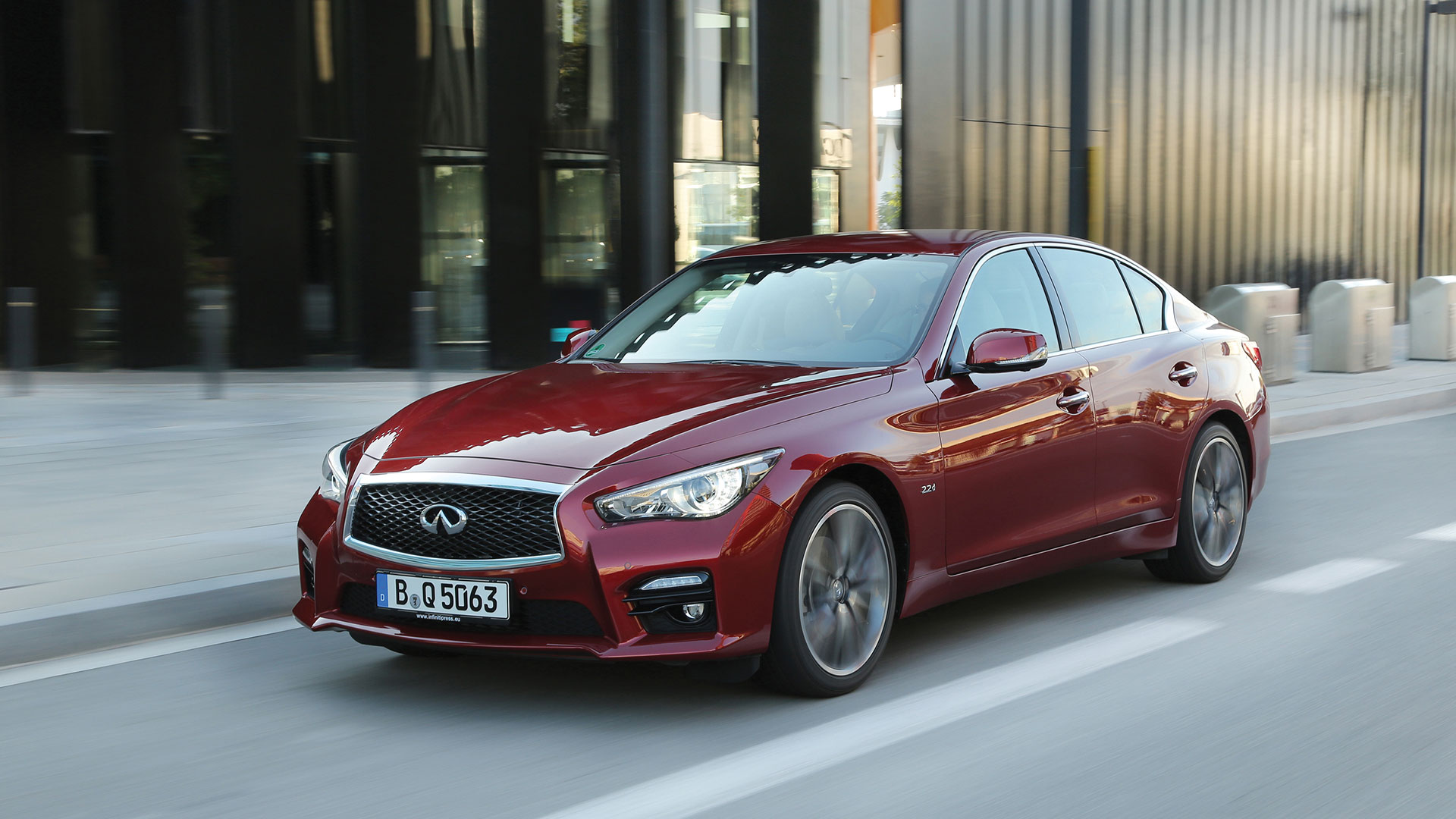 Extérieurement, les changements esthétiques rendent le Q70 plus proche de la berline sportive Q50 lancée en 2013. Les boucliers avant et arrière prennent une apparence plus ciselée alors que les feux LED – désormais de série, restent fidèles à la signature visuelle Infiniti. Les feux arrière ont également été retravaillés avec l’apport de LED pour un meilleur rendu visuel. Les calandres – classique et sport – ont également été modifiées pour être plus proche des traits du Q50. A bord, le confort et l’insonorisation ont également été améliorés. De nombreux points au niveau de la structure de la caisse et du châssis ont été retravaillés pour réduire drastiquement les intrusions sonores dans l’habitacle liées à l’écoulement d’air, les bruits mécaniques et de roulement. Spécifique au marché européen, le nouvel Infiniti Q70 est doté d’une motorisation 4 cylindres 2.2l diesel développant 167 chevaux et 400Nm de couple (valeurs maximales entre 1600 et 2800 tours minute). Le temps de latence du turbo et la consommation ont été réduits grâce à l’utilisation d’injecteurs à solénoïde 1800-psi (124,05 bars) spécifiques et à un turbo à géométrie variable. Le Q70 Hybride - doté du système Infiniti Direct Response Hybrid® et de l’Intelligent Dual Clutch Control (double embrayage intelligent) - évolue également. Les principales améliorations portent sur la réduction des frictions mécaniques du V6 3.5l essence et la programmation du logiciel de gestion du groupe motopropulseur. Elles engendrent une plage d’utilisation full EV étendue par rapport à la précédente version et un découplage du moteur prolongé en vitesse stabilisée sur autoroute. Hybrid 3,5 V6 Premium Tech : 306 ch – 250 km/h – 62 300 €