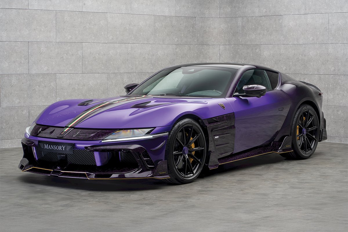 Les ingénieurs de Mansory ont développé un kit complet pour la 12Cilindri, torturant les lignes pourtant si élégantes de l’italienne, notamment sur la partie avant. En effet, la proue se pare d’une bande centrale sur le capot tout en carbone et intégrant des prises d’air, ainsi que de nouvelles lames avant très prononcées. La Mansory Equestre a été élargie et se voit habillée d’une peinture violette tirant vers le noir, mélangeant carbone et effets visuels brillants. Chose étrange : Mansory n’a pas rajouté d’aileron ! L’âge de raison ?