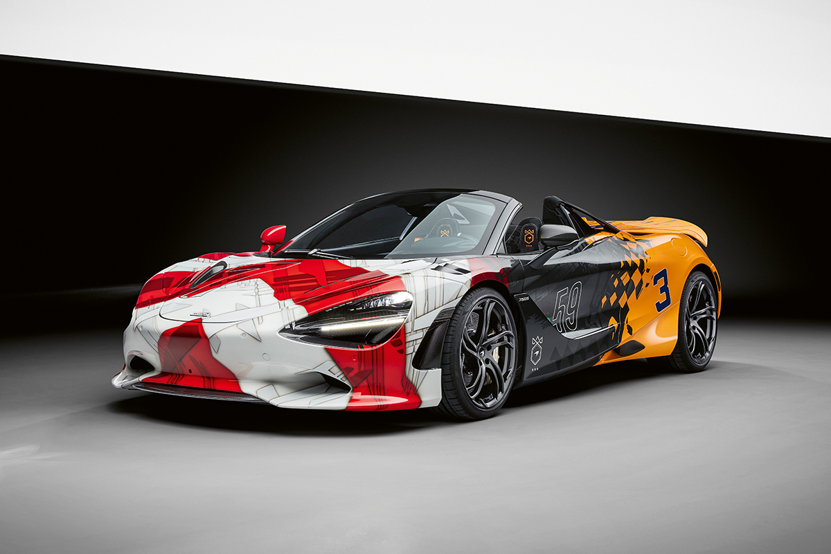 Sur base de 750s spider, l’intérêt du véhicule tient dans sa livrée atypique développée par MSO, entièrement peinte à la main et qui a nécessité 1200 heures de travail. Commençons par la partie avant, blanche et rouge, s’inspirant de la livrée de la Formule 1 ayant gagné le Grand Prix de Monaco en 1984. Arborant le numéro 7 et pilotée par Alain Prost, ces couleurs sont mythiques. La partie du milieu quant à elle s’inspire de la F1 GTR et sa livrée Ueno Clinic, ayant remporté les 24 Heures du Mans en 1995 avec entre autres le pilote français Yannick Dalmas. Enfin, la partie arrière met en avant la livrée avec laquelle McLaren a remporté les 500 miles d’Indianapolis en 1974.