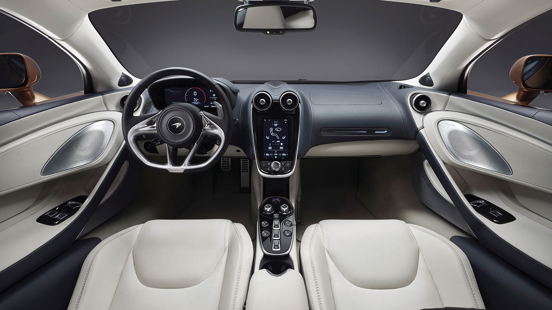 Esthétiquement, l’automobile est donc assez similaire à la future SpeedTail selon certains angles, bien qu’elle hérite de tous les attributs du constructeur britannique. En ce sens, le style McLaren est reconnaissable à mille lieues. Avec un poids de 1466 kg, la McLaren GT est plutôt légère, et inaugure un nouveau type de véhicule dans la gamme McLaren.