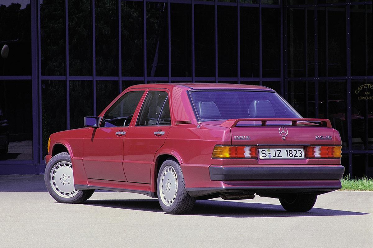 Dans les années 80, l’automobile est un vecteur de réussite sociale, et les constructeurs premium allemands ont le sourire. À cette période, la marque de Stuttgart est réputée pour son confort et sa qualité, faisant profil bas en matière de sportivité depuis la fin des années 60. Et pourtant, Mercedes-Benz a choisi le bon moment pour se relancer en sport automobile et donner un coup de pied dans la fourmilière en brisant les codes et les idées reçues. Née en 1983 au salon de Francfort, la Mercedes 190E W201 est une berline 4 portes de la marque à l'étoile qui inaugure la première familiale sportive de son histoire. L’auto est créée afin de respecter le règlement du championnat allemand de DTM, qui impose au constructeur une déclinaison routière de sa voiture de compétition. C’est d’ailleurs elle qui va créer la nécessité d’une M3 E30 !