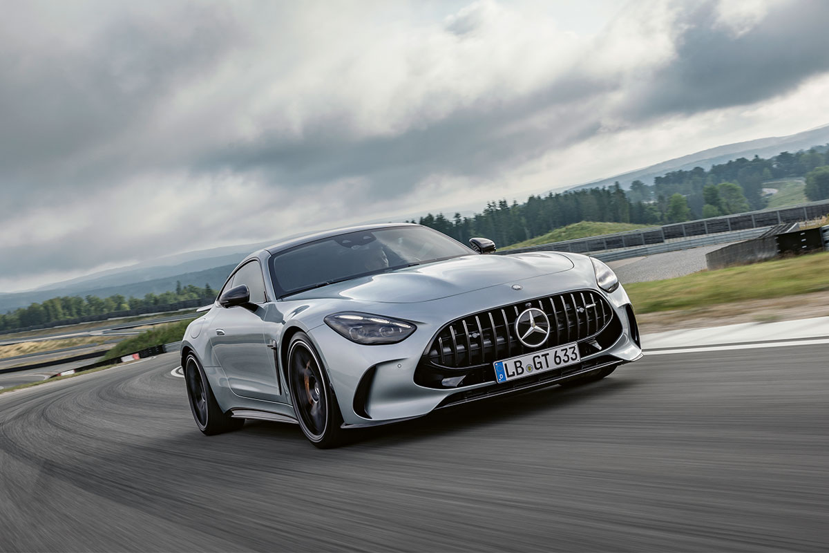 L’auto reprend la base du nouveau roadster SL de la marque à l’étoile, mais les proportions du véhicule évoluent. Pour commencer, elle est plus longue bien que le capot se raccourcisse pour recentrer l’habitacle. Tout en conservant sa face avant (avec une calandre élargie), la poupe évolue : plus rebondie, elle intègre de nouvelles optiques en forme de bulles reliées par un bandeau noir. L’aileron fixe demeure optionnel. Les disques de frein de 390mm à l’avant en matériaux composites font partie de l’équation.