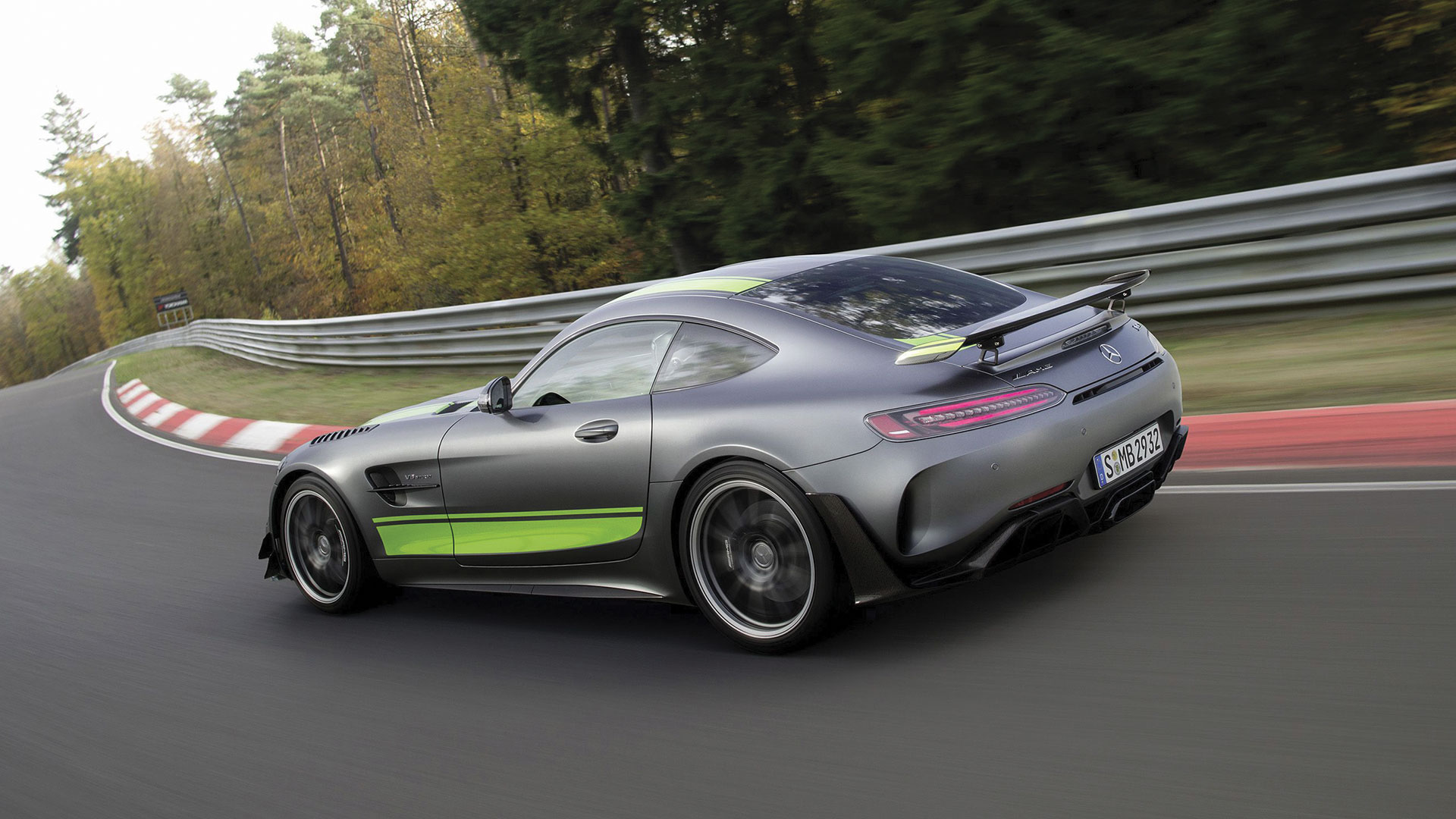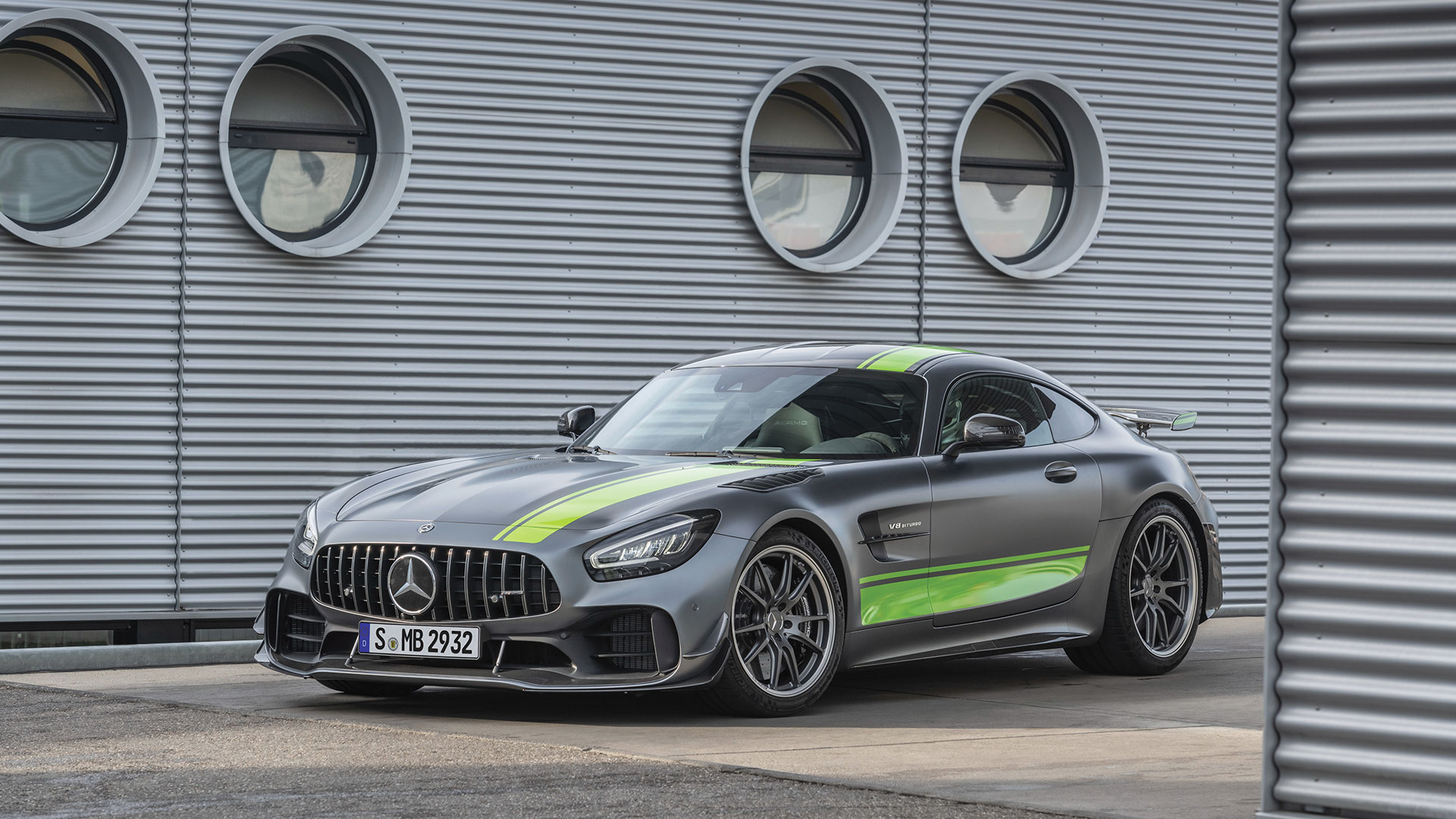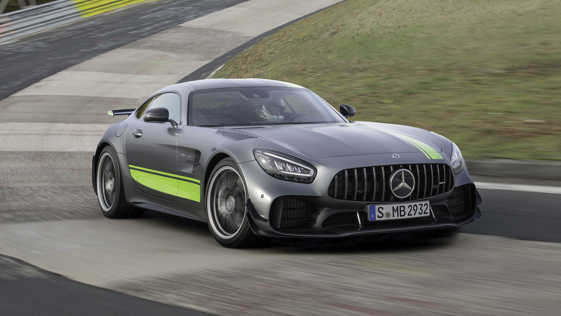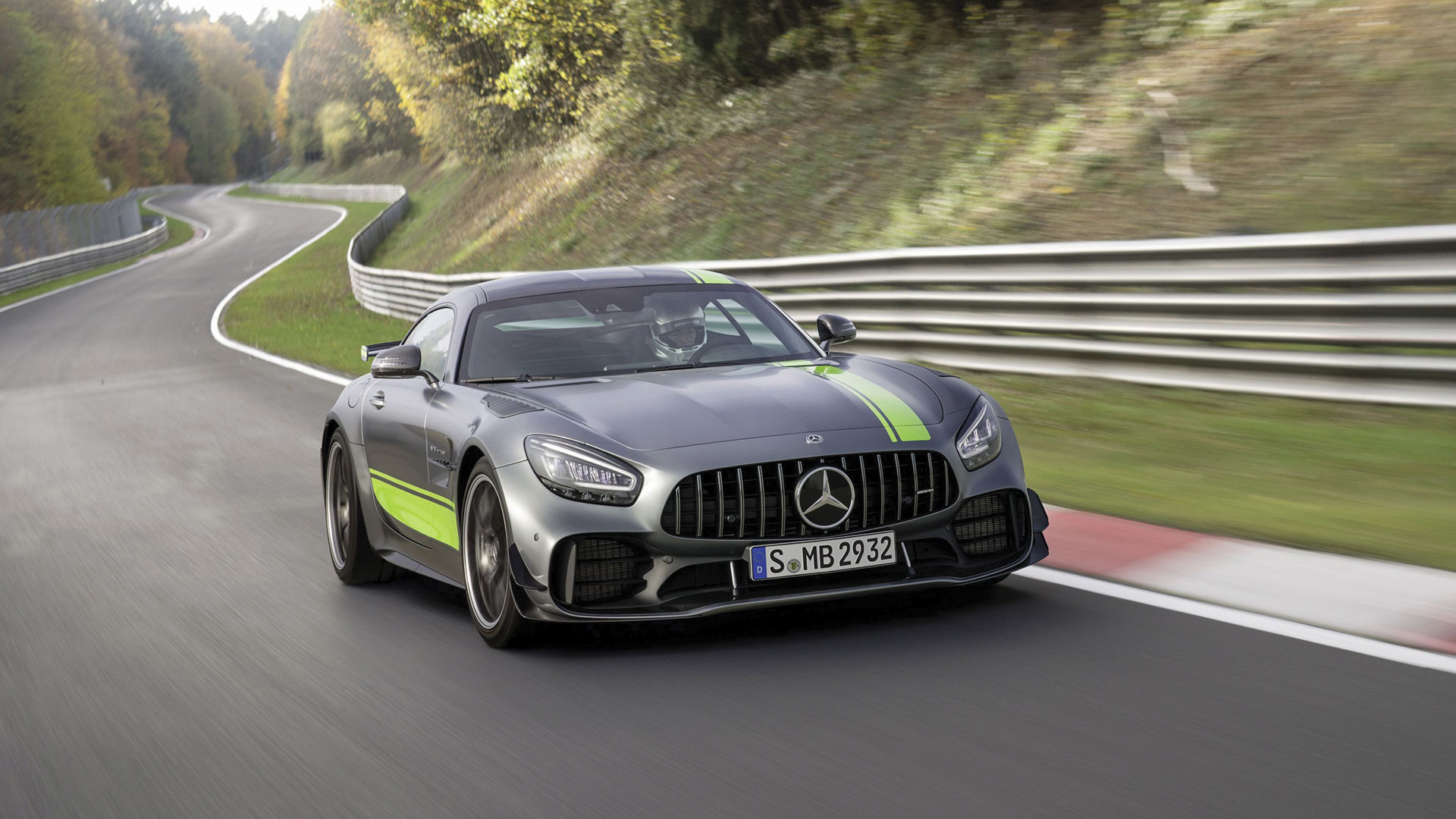 Les changements et évolutions visuelles sont très minimes et légères, presque imperceptibles. Elles sont le plus marquées sur la face avant, avec ces ailettes et ce bouclier remodelé ainsi qu’une nouvelle calandre. Heureusement qu’il y a ces bandes décoratives et un logo R encadré dans un drapeau à damiers pour la différencier. À l’intérieur de l’habitacle, cette AMG GT R PRO est très digitale. Trois ambiances y sont proposées : Classic, Sporty et Supersport. Un nouveau gadget (AMG Track Pace) vous donne des données relatives à vos sorties circuit, tout en proposant des conseils. Comme nous vous le disions, l’auto est typée piste. Ses réglages de suspension et l’aérodynamisme ont été retravaillés. Plusieurs packs sont disponibles, allant jusqu’à proposer un harnais à quatre points, un extincteur ou encore un arceau de sécurité. Sous le capot, on retrouve les mêmes blocs V8 de l’AMG GT, avec différents niveaux de puissance, allant de 476 chevaux à 585 chevaux (AMG GT R et GT R PRO). La différence avec la AMG GT R est donc assez minime, c’est une véritable chasse aux kilos en attendant la version Black Series.